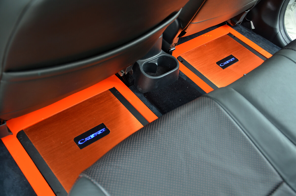 Sekali lagi, pemasangan amplifier ini dilakukan dengan sangat kemas dan berseni. Biasanya, amplifier disorokkan di belakang tempat duduk atau di bawah kerusi depan. Myvi ini bertindak berani dengan memasangkannya di bahagian lantai setiap bahagian letak kaki penumpang dan pemandu. Perumah khas diukur tepat bagi membolehkan anda rasa masih memijak lantai yang asal. Jujurnya, ketika pertama kali menaiki kereta ini saya ingat kerusinya telah direndahkan, walhal, ketinggian lantainya telah bertambah dari komponen amplifier tadi.