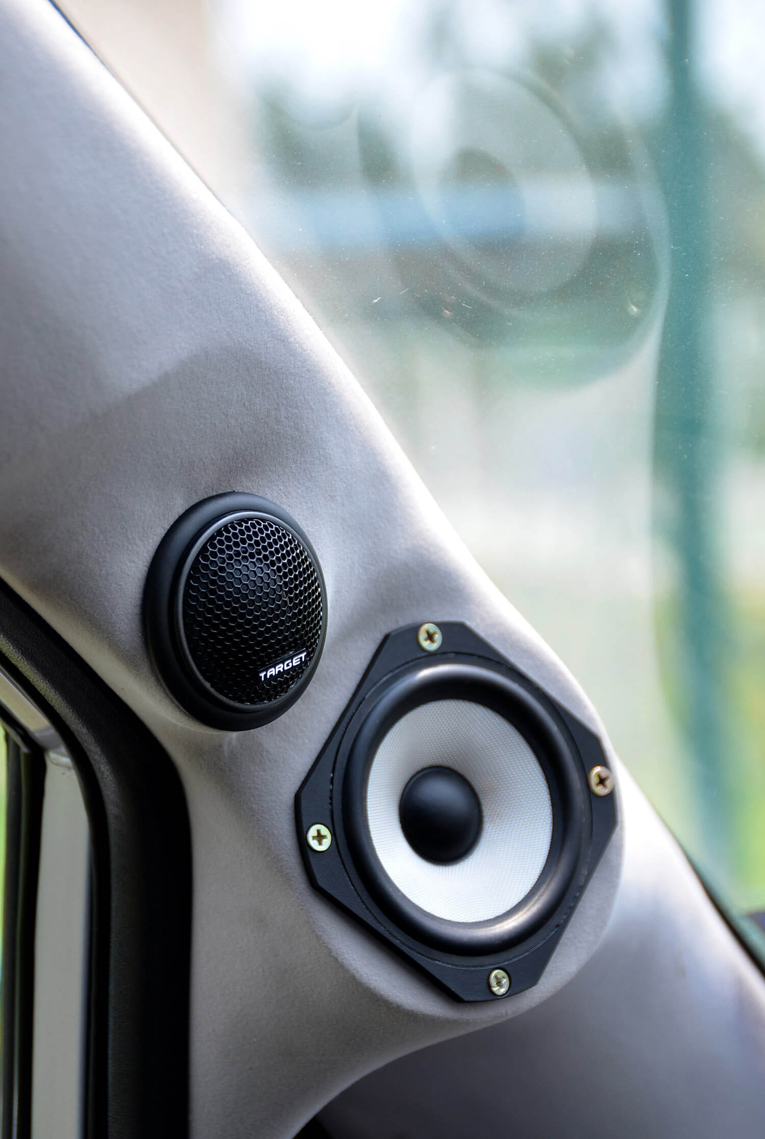 Walaupun tidak asli, pemotongan pada panel pintu Jazz untuk memuatkan mid bass Target Audio TDK-165 tidak dapat dielakkan kerana rekabentuk pintu yang menghadkan pemasangan kebanyakan speaker aftermarket. Dengan sedikit idea, pemasangan set mid Target Audio ini berjaya dengan sebuah penghadang khas dibina untuk mengelakkan ‘kecederaan’ kerana kedudukannya yang begitu hampir dengan lokasi kick panel kereta.