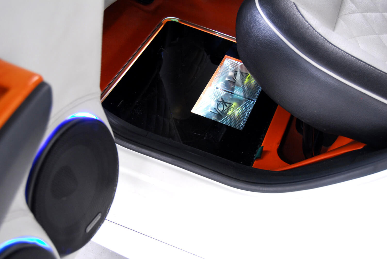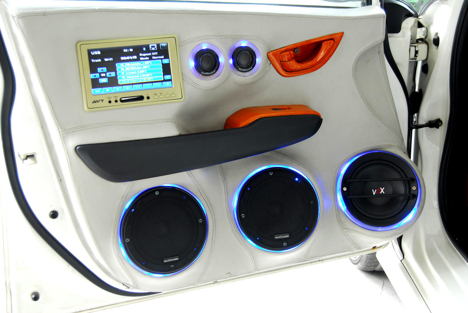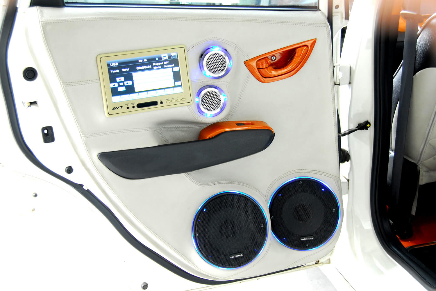Bahagian kokpit disaratkan deretan speaker pada kedua-dua belah panel pintu yang telah diubahsuai. Setiap satunya dilekapkan 2 unit mid bass Vox siri Altitude, seunit mid bass 6” Vox dan 2 unit dome tweeter. Mengiringi speaker adalah seunit monitor untuk hiburan visual. Di kedua-dua bahagian pillar A pula dihuni seunit mid range dan seunit speaker ribbon. Tidak cukup dengan itu, panel pintu belakang juga dipasangkan 2 unit mid bass siri Altitude dan 2 unit tweeter. Menurut Wisnu, pemasangan seumpama ini menjadikan suara menjadi lebih rata dan seimbang.