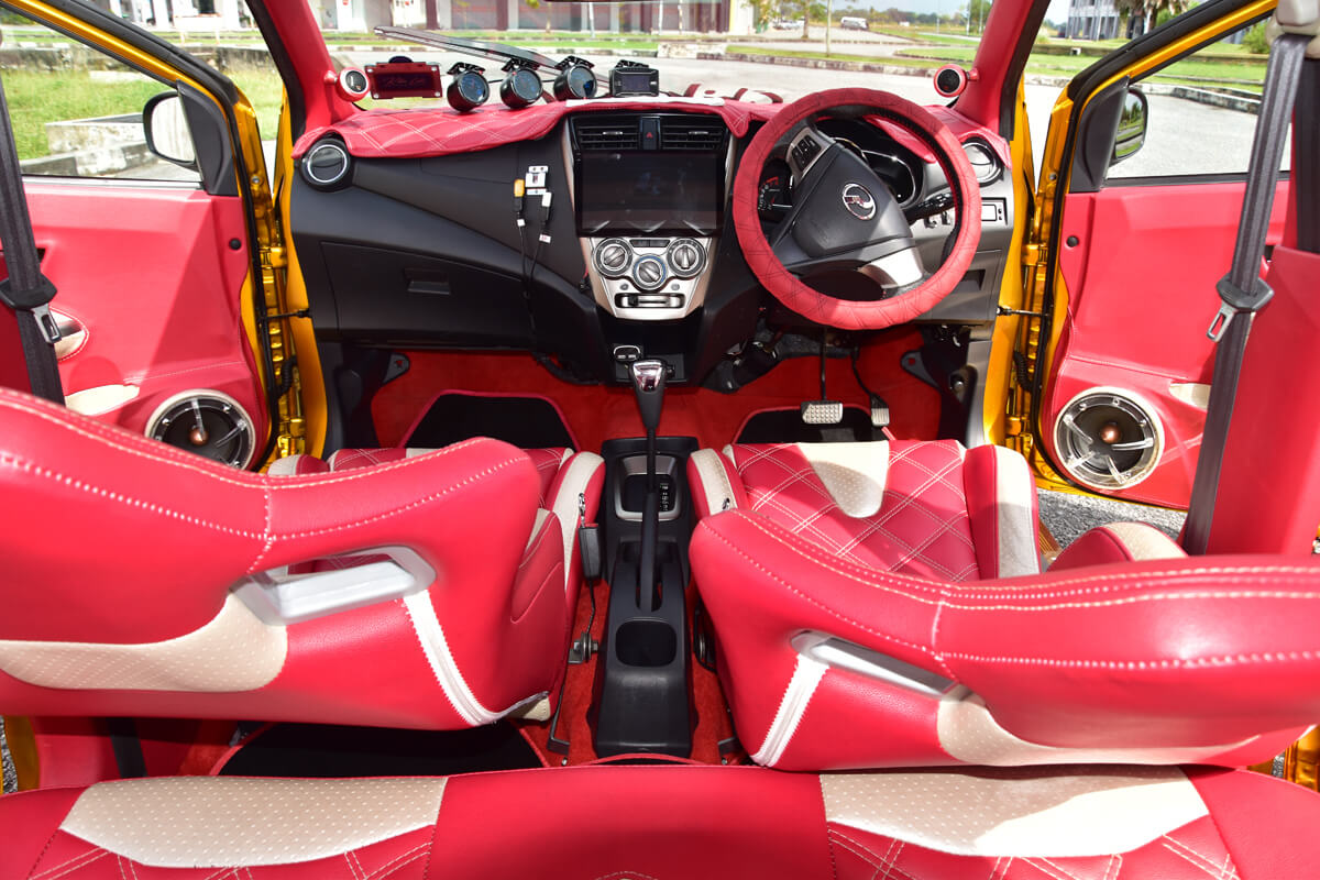 Berbalik kepada hiasan interior seperti yang disebut awal tadi, Chik Jan telah memilih konsep VIP Style. Kerusi asal telah ditukar dengan kusyen sport yang dibuat khas oleh Samad Kusyen (Sg. Petani, Kedah), menggunakan dua warna utama iaitu merah dan putih. Padanan yang cukup menarik dan paling penting, kemas. Memang boleh nampak kalau ada sehelai rambut jatuh atas kusyen.