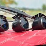Tidak banyak speaker digunakan untuk bahagian belakang. Hanya 2 unit mid bass 6 inci dan 2 unit horn tweeter dari KLM Audio digunakan. Keempat-empat speaker ini ditempatkan dalam perumah khas yang turut ditanamkan bersama 6 unit monitor. Sistem audio di bahagian belakang ini, Chik Jan memilih untuk menggunakan talaan SQ dan hanya satu unit woofer 12 inci dari Rockford Fosgate telah ditempatkan dalam perumah yang sama. Mungkin ada yang bertanya, berapa unit amplifier pula yang digunakan untuk menguasakan kesemua speaker dalam Axia ini? Hanya seunit amplifier 5 channel siri Punch dari Rockford Fosgate telah digunakan.