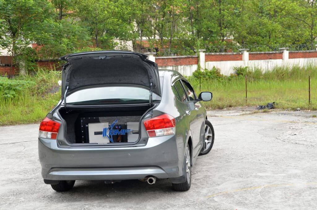 Kelebihan City ini juga boleh dirujuk kepada posisi woofernya yang dipasangkan di bahagian kick panel penumpang hadapan. Ini bukanlah lokasi yang anda mahu bagi sebuah sedan kompak kerana banyak fakta negatif berbanding positif. Tidak ramai yang berjaya menempatkan sub di sini dengan sempurna dan mampu bertahan lama.