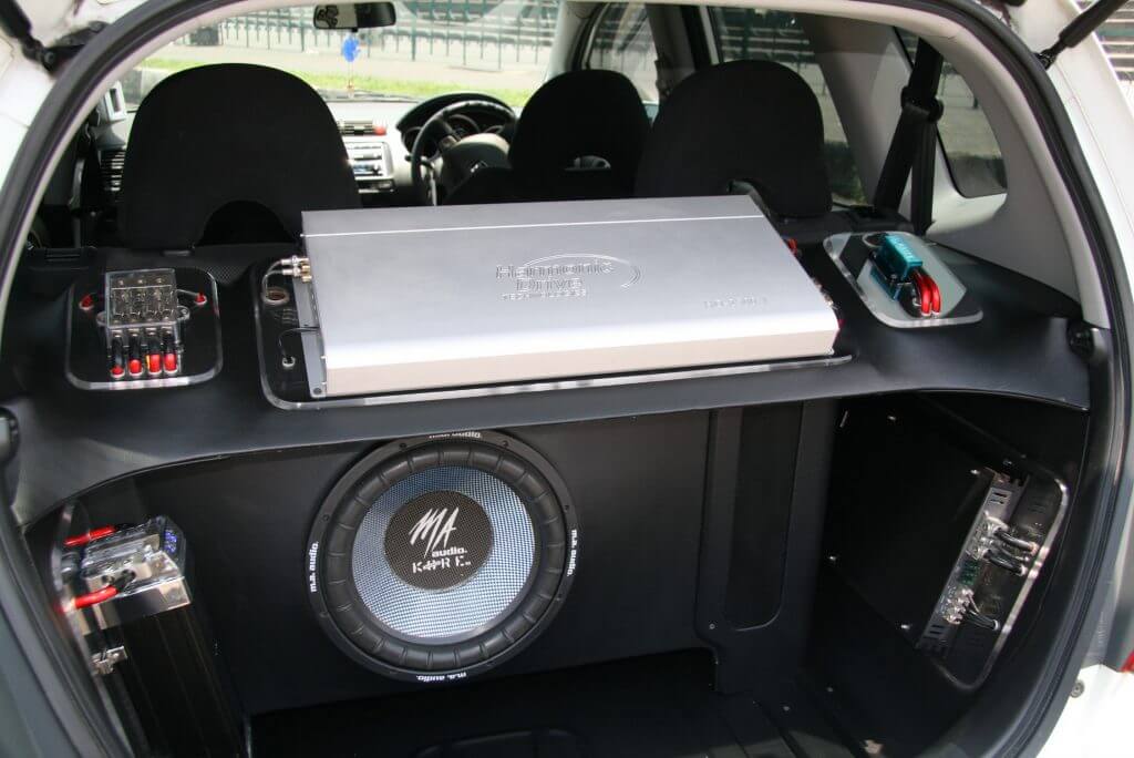 Sistem audio ini termasuklah satu unit woofer dari MA Audio HK 12×2, yang didatangkan dengan dwi-koil suara 2 ohm, dwi-magnet strontium dengan kuasa maksima pada 3000 watt. Ditempatkan dalam kotak untuk bunyi maksima serta efisien ditiunkan pada 35 Hz untuk kesesuaian citarasa Indra yang meminati muzik pelbagai genre. Bagi memandu woofer ini pula, seunit amplifier monoblock Harmonic Drive HD 2500.1 telah digunakan.