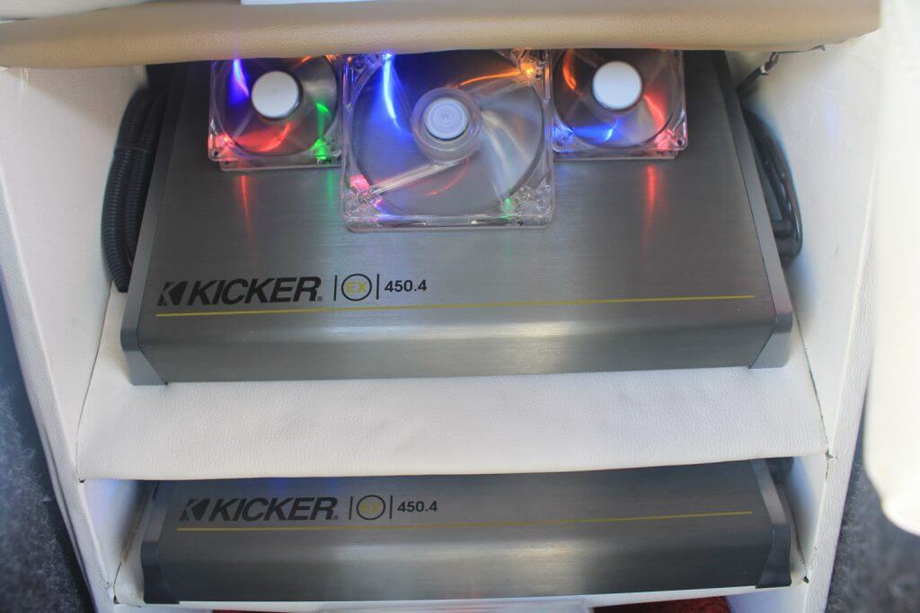 Seunit amplifier ini memacu 4 unit mid bass Kicker ES652 dan bersamanya adalah 4 unit tweeter, di mana kesemua speaker ini dipasangkan untuk sistem audio bahagian dalam kereta. Unit amplifier yang sama, dikongsi 4 lagi unit tweeter yang dipasangkan di bahagian belakang. Jika diperhatikan, bahagian kerusi paling belakang telah digantikan dengan perumah khusus yang menempatkan sebahagian besar sistem audio. Seunit lagi amplifier 4 channel tadi digunakan untuk memacu 4 unit mid bass Kicker ES652 dan 2 unit speaker trixial Kicker ES693 yang setiap satunya dilengkapi dengan 2 unit tweeter.