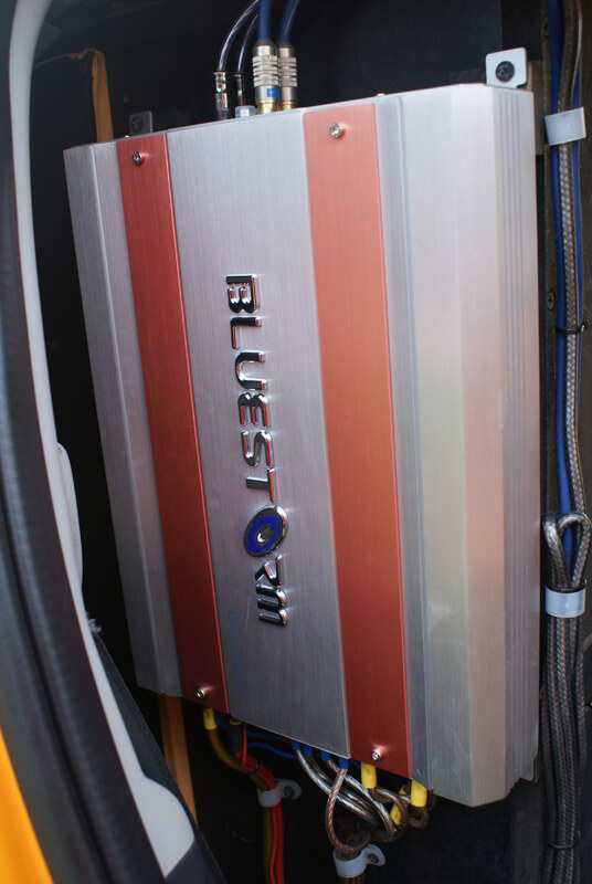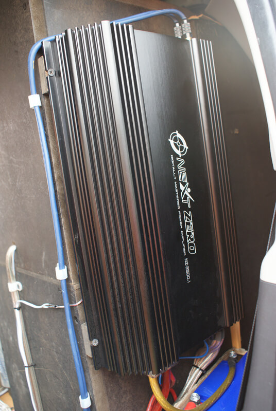 Isyarat tadi kemudiannya akan singgah ke stesen berikutnya, untuk diperbesarkan pula bagi tujuan memacu barisan speaker. Stesen yang dimaksudkan ialah amplifier. Dalam sistem I.C.E kepunyaan Sam ini, dua unit amplifier telah digunakan. Amplifier ini pula akan memacu sejumlah speaker yang telah dibahagikan mengikut kemampuan pacuan setiap unit amplifier. Seunit amplifier Bluestorm 4 channel telah digunakan untuk memacu 2 unit horn tweeter dan 3 unit mid bass berukuran 6” dari jenama Alfa Linear.