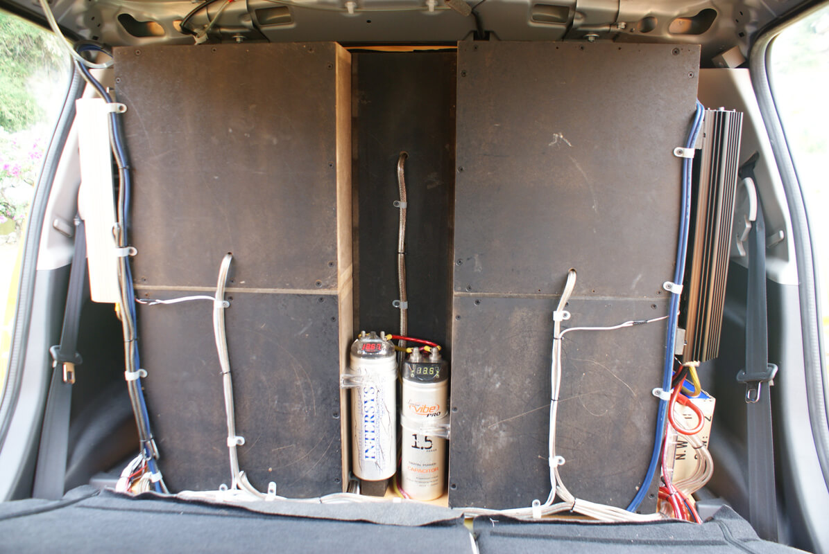 Bagi meneruskan kecemerlangan yang dibawa oleh isyarat tadi, Sam menutup jentera sistem I.C.E ini dengan 4 unit woofer 12” yang juga dari jenama Alfa Linear. Kesemua woofer ini pula telah dipacu oleh seunit amplifier 1 channel jenama Next Zero NZ-2500.1. Dalam memastikan gabungan sistem I.C.E Myvi ini tidak semput di pertengahan, Sam menggunakan 2 unit kapasitor. Kapasitor tersebut ialah Intersys 1.0 farad dan juga kapasitor kuasa digital Lanzar Vibe Pro 1.5 farad.