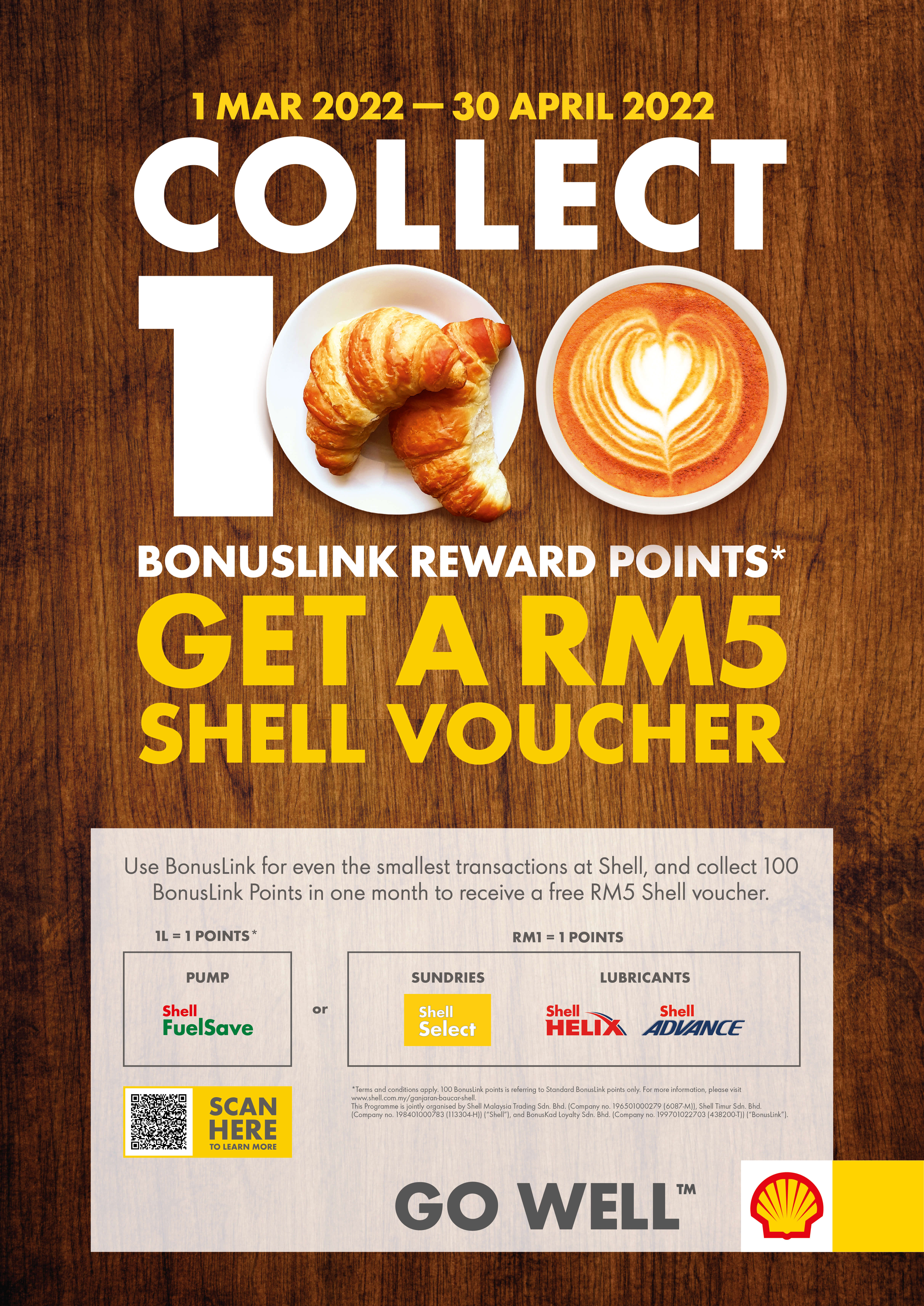 Shell terus memberikan ganjaran ekstra kepada para pelanggannya dengan melanjutkan kempen Every Little Point Counts. Kempen ini merupakan kerjasama dengan BonusLink di mana dengan hanya 100 mata standard bonus link, para pelanggan layak menerima baucar berharga RM5 sepanjang bulan Mac dan April.