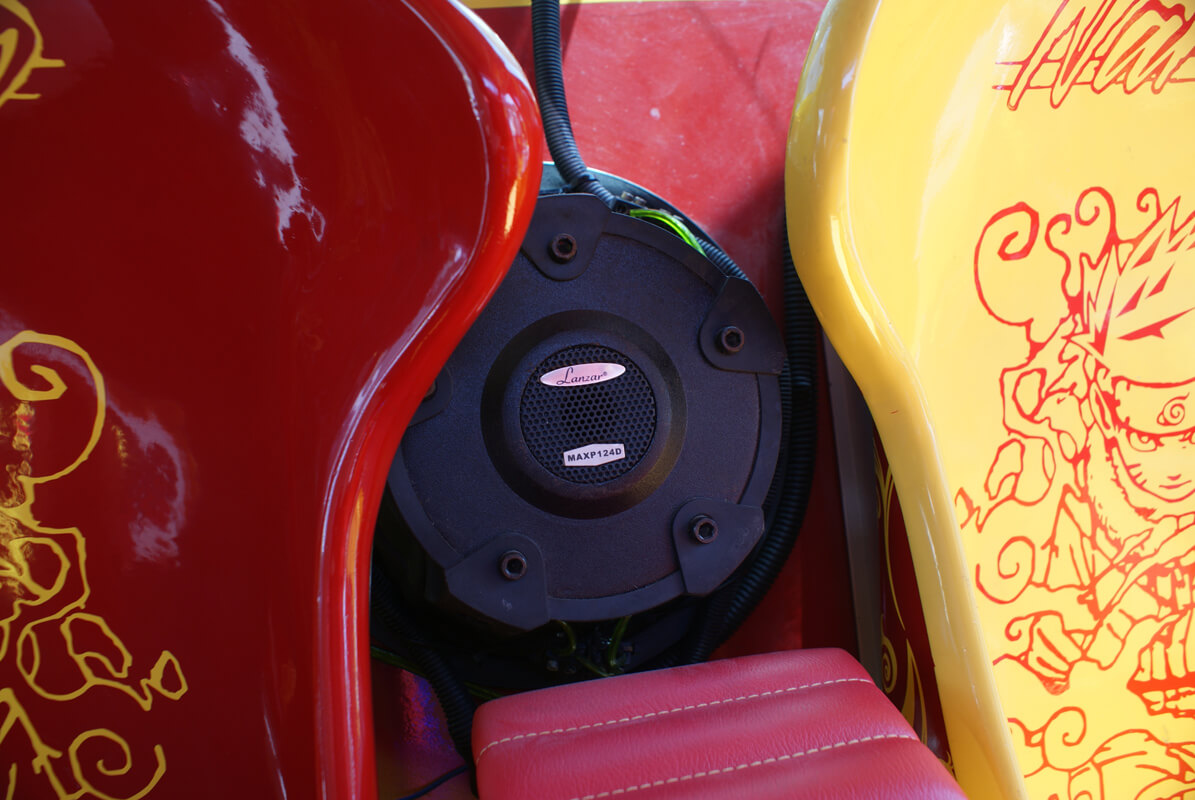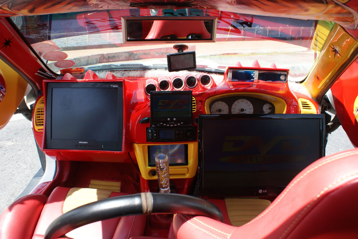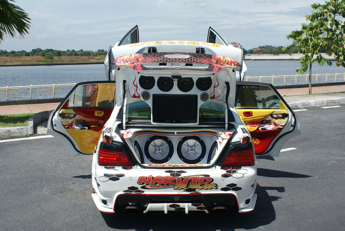 Kalau sudah memikul sistem ICE sebegini, tentunya muzik yang dimainkan bukan yang berentak sentimental, sebaliknya heavy. Dan bila memainkan muzik heavy, tak sah kalau tak pasang sehabis volume, tak begitu? Itulah yang terjadi kepada kereta Naruto ini. Namun, dalam kemeriahan LCD LG yang menjadi perkakas sampingan serta ditambahkan lagi dengan set playstation, kereta ini tetap mempunyai kekurangan. Apakah kekurangan yang ada pada kereta ini?