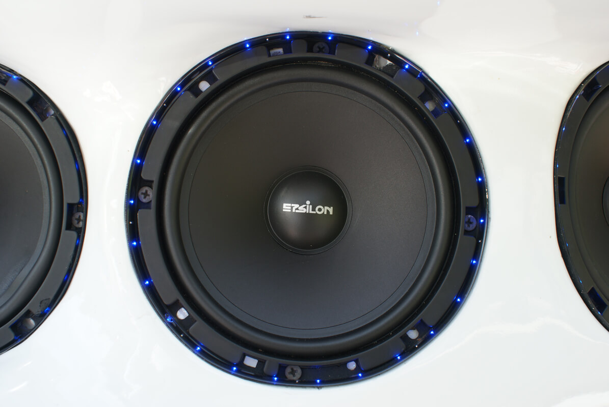 4 unit mid bass Epsilon ini pula dipacu seunit amplifier 4 channel dari jenama Sony Explore. Amplifier ini juga turut memacu 2 unit tweeter Audio Master. Kesemua barisan speaker ini telah ditempatkan di bahagian belakang, menemani barisan woofer tadi. Tetapi kedudukannya pula di sebalik penutup but. Kedudukan yang tersusun dan rapi, menambahkan lagi keindahan bahagian ini selain bunyinya yang benar-benar menggoda para pendengar.