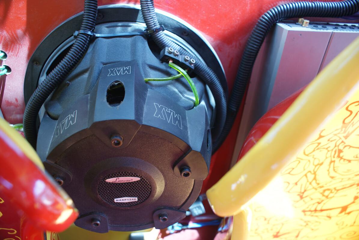 Lihat sahaja jenama yang bertakhta di bahagian but belakang kereta ini, 4 unit woofer 12” Kicker Comp VR Aluminized. Dengan tema Livin’ Loud, keempat-empat woofer ini memikul tugas memainkan bunyi yang kuat. Dalam masa sama, memberi kemantapan yang sekaligus memberikan kepuasan maksima kepada Kelvin. Tidak cukup dengan itu, seunit lagi woofer digunakan. Kali ini, Kelvin sengaja memasang woofer 12” MAX124D dari Lanzar secara terbalik. Bukan kerana untuk menunjuk magnet yang digunakan, sebaliknya cara ini mampu mengurangkan tekanan.