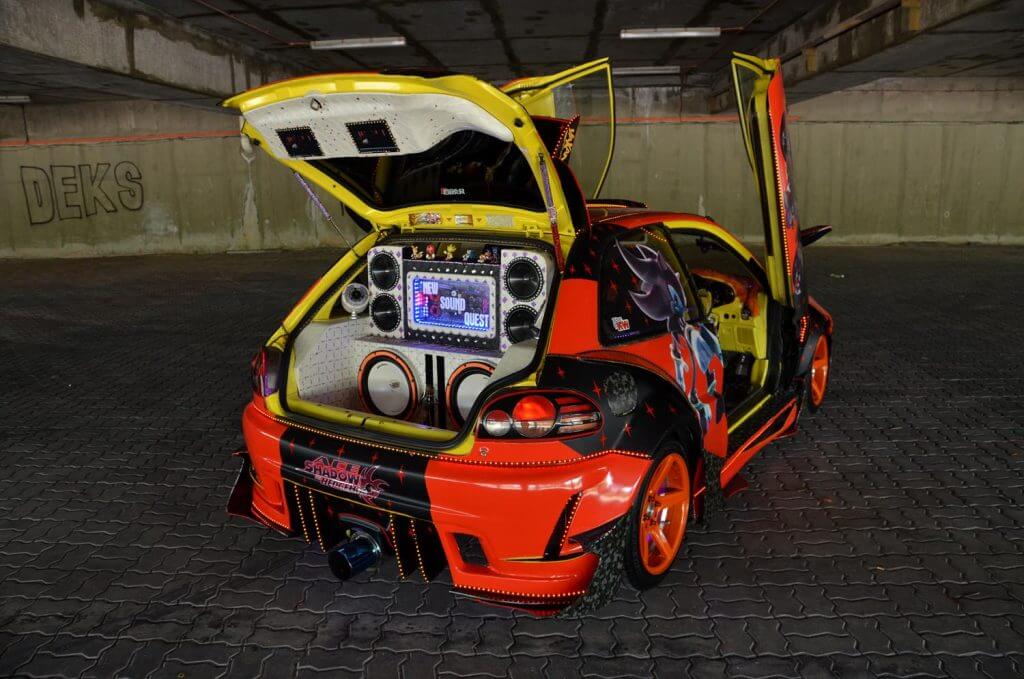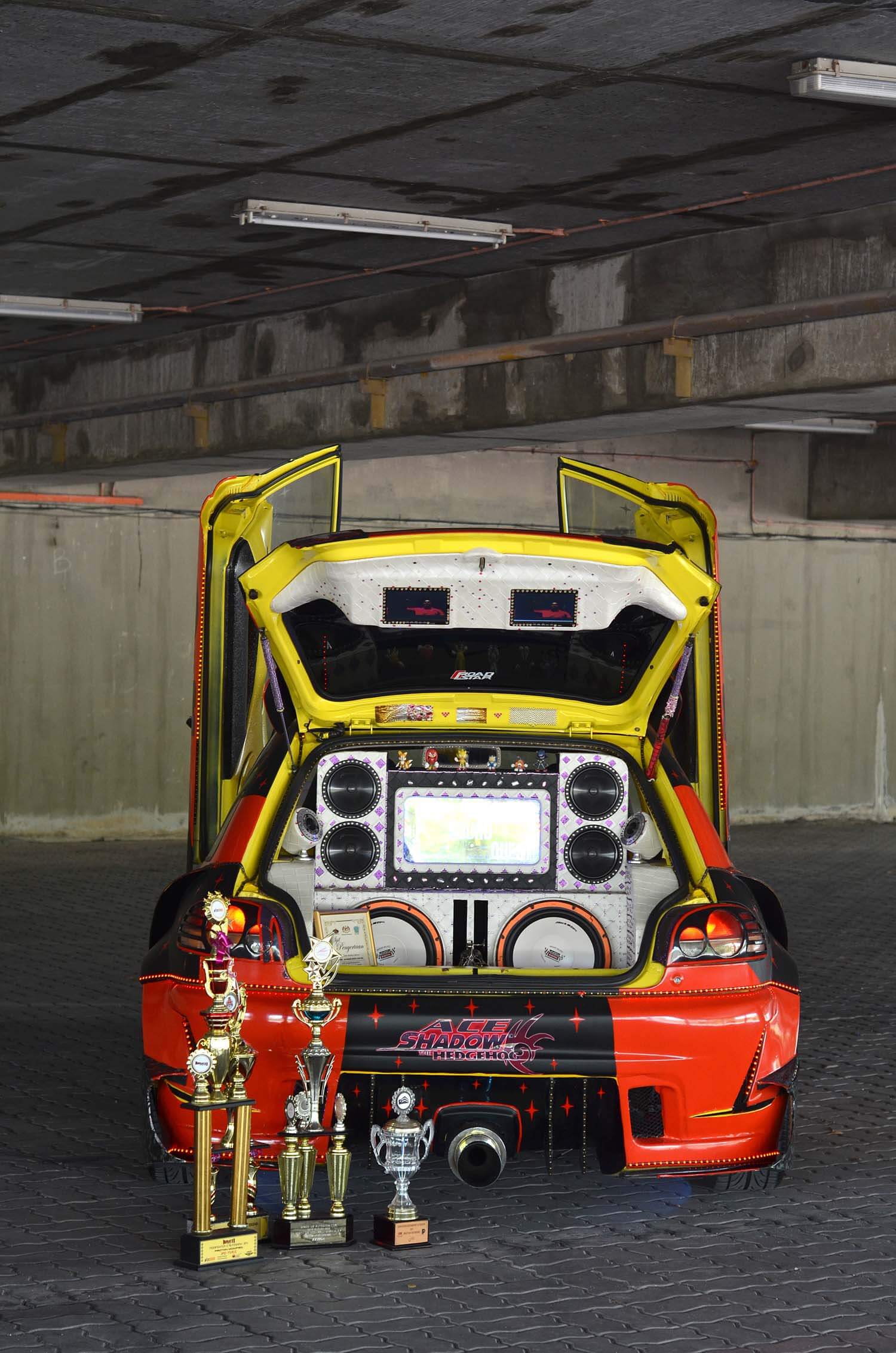 Pemain utamanya ialah unit 2-din dengan fungsi DVD dari Trans. Seunit amplifier Trans 2 channel, seunit amplifier Mohawk 4 channel dan seunit amplifier monoblock Bazoka mengendalikan kesemua output kuasa sistem ini. Ia dipasangkan dengan 6 unit speaker mid bass U-Dimension, 4 terletak di belakang boot dan dua unit lagi pada panel pintu depan. Tweeter untuk sistem dalamannya menggunakan jenama Mohawk sementara untuk sistem belakang dipilih dari jenama U-Dimension.