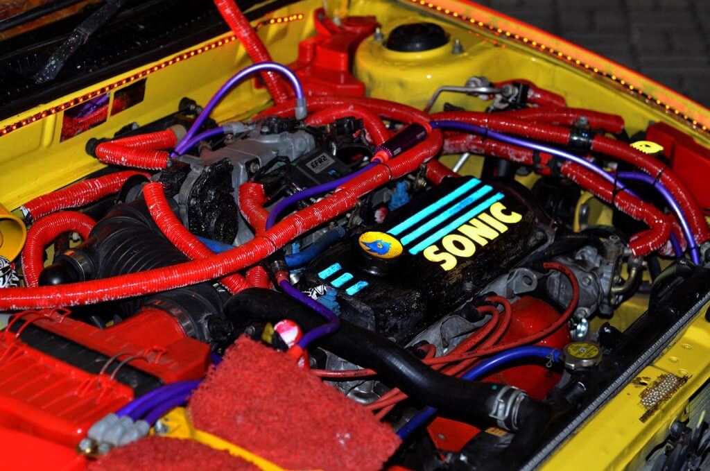 Kemudian beliau beralih ke bahagian enjin. Sistem ekzos dipasangkan dengan Jasma Performance dengan paip berdiameter 1.7 inci dan manifold 4-2-1. Di samping itu, turut ditukar ialah kabel palam pencucuh dan penapis udara K&N filter.