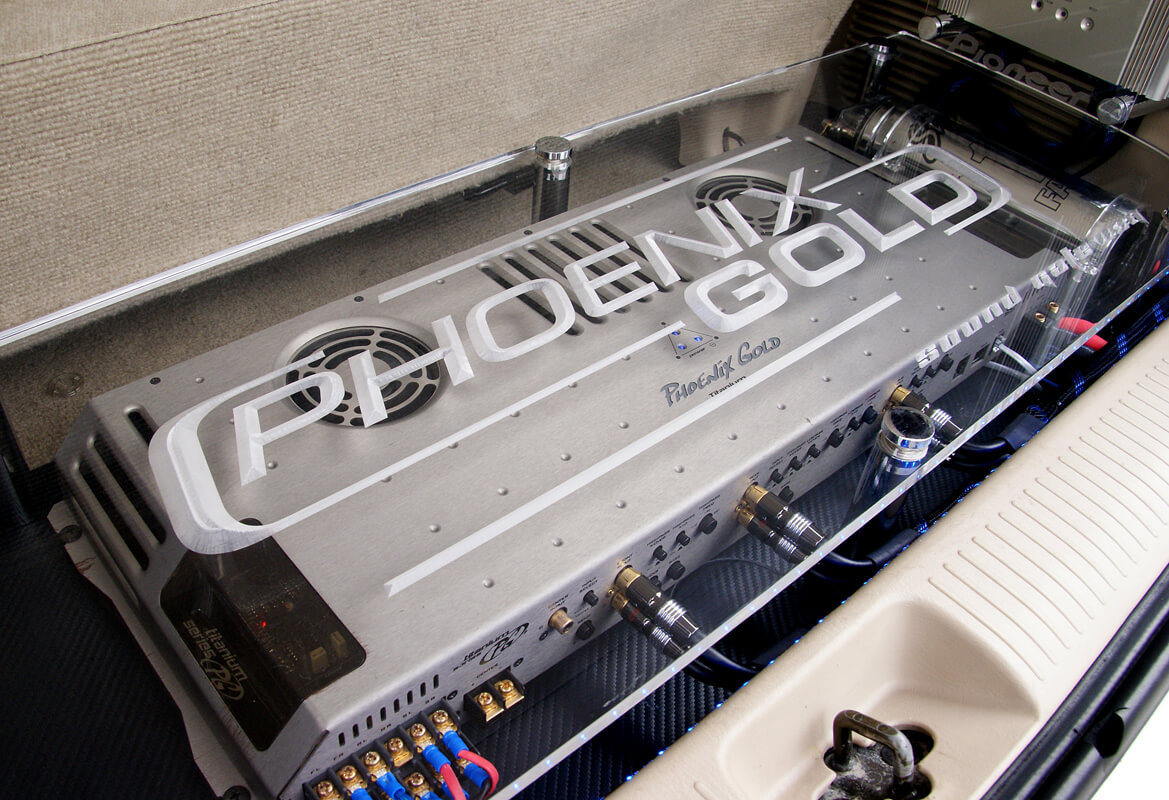 Amplifier yang dipilih ialah Phoenix Gold Titanium 900.7. Amplifier ini bukanlah jenis yang boleh anda beli di Brother’s, apatah lagi di Jalan Pasar. Tidak banyak kedai yang menjualnya, kerana ia perlukan jurujual yang berpengetahuan untuk menjual sebuah objek bersaiz 2 kaki yang sama nilainya dengan sebuah Perodua Kancil berkuasa turbo dan kit badan. Amplifier ini bertindak membekalkan kuasa kepada SEMUA frekuensi speaker.