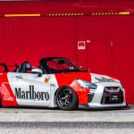Selain itu, Liberty Walk melengkapkan jentera dengan lengkungan tayar bahagian depan dan belakang bersesuaian dengan set tayar spoke berwarna hitam. Ia juga merangkumi skirt sisi yang ditempah lebih awal. Modifikasi diteruskan di bahagian belakang dengan pemasangan rear wing yang tinggi, lencana GT-R dan pakej bamper serta diffuser kelihatan seperti GT-R.