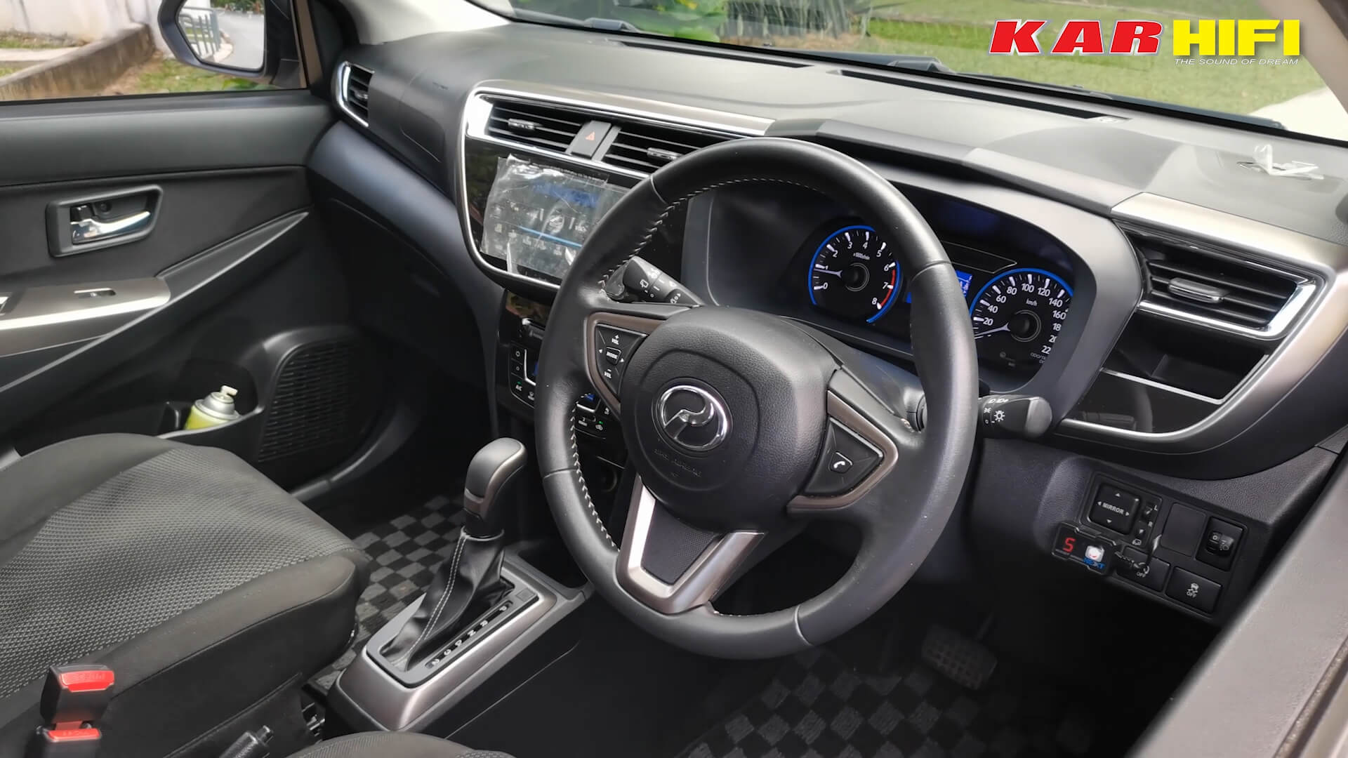 Nak dijadikan cerita, Kar HiFi berpeluang bertemu dengan Abu dengan kereta Myvi baharunya. Kalau dilihat dari bahagian luar, memang dah cantik. Hampir semuanya dah dipasang baru termasuk rim sport, disc brake dan tidak ketinggalan pemakaian carbon fiber parts. Cuma bahagian dalamnya yang kurang dan macam langsung tak disentuh. Lihat sahaja pada plastik yang masih melekat pada pemapar pemain utama yang terletak di bahagian kokpit.