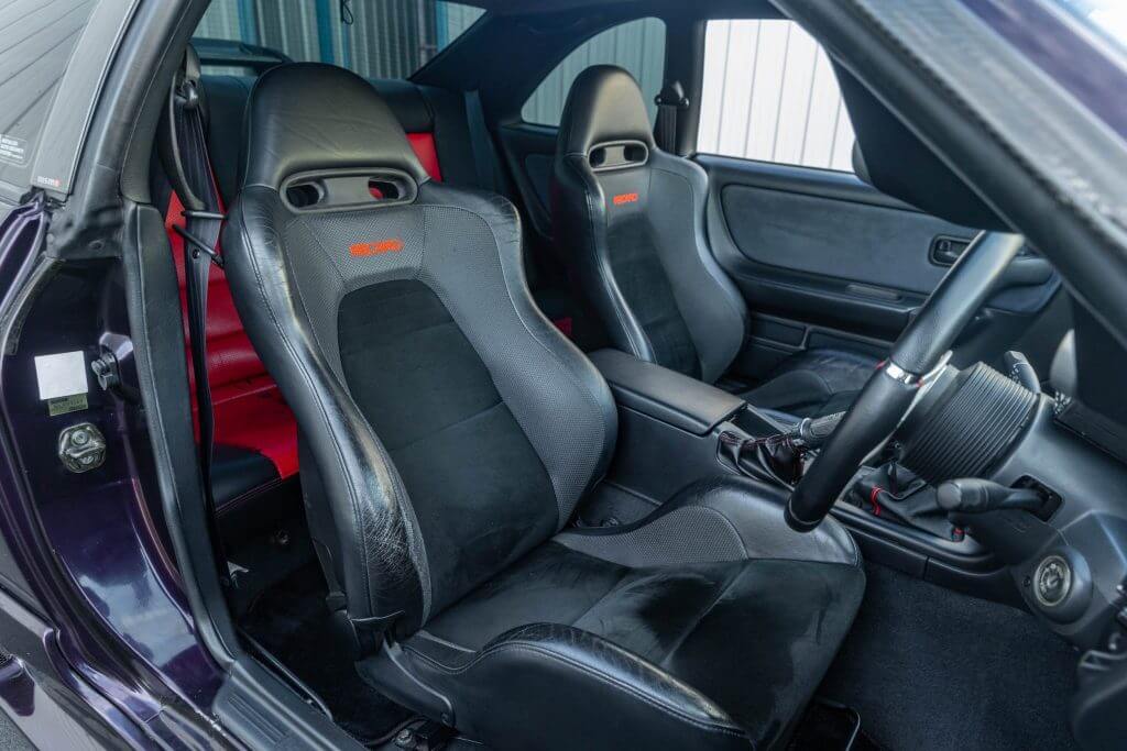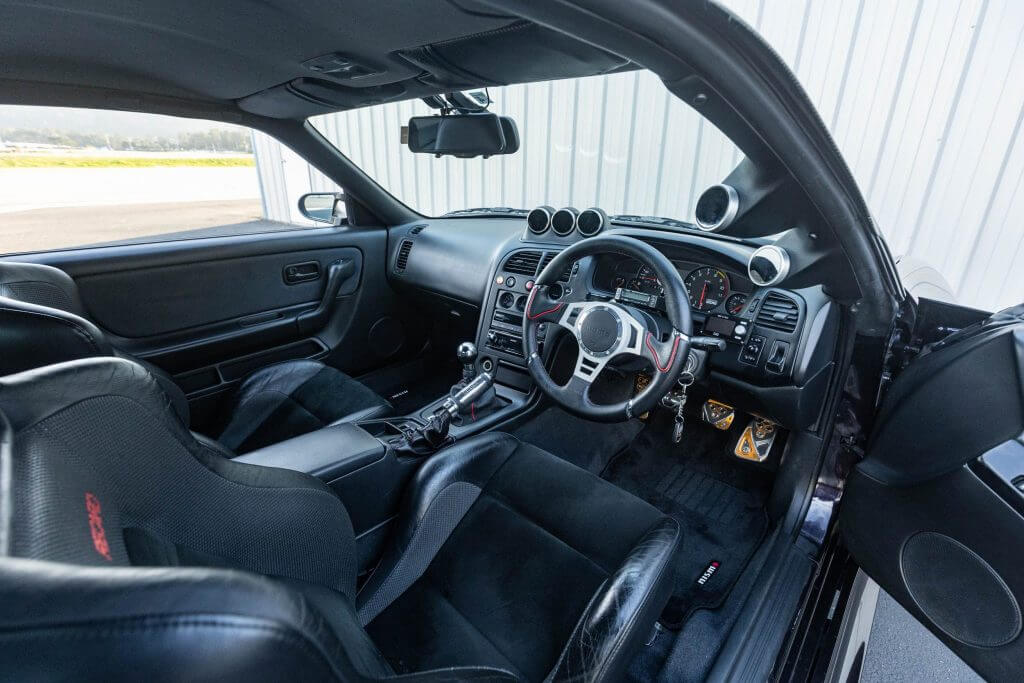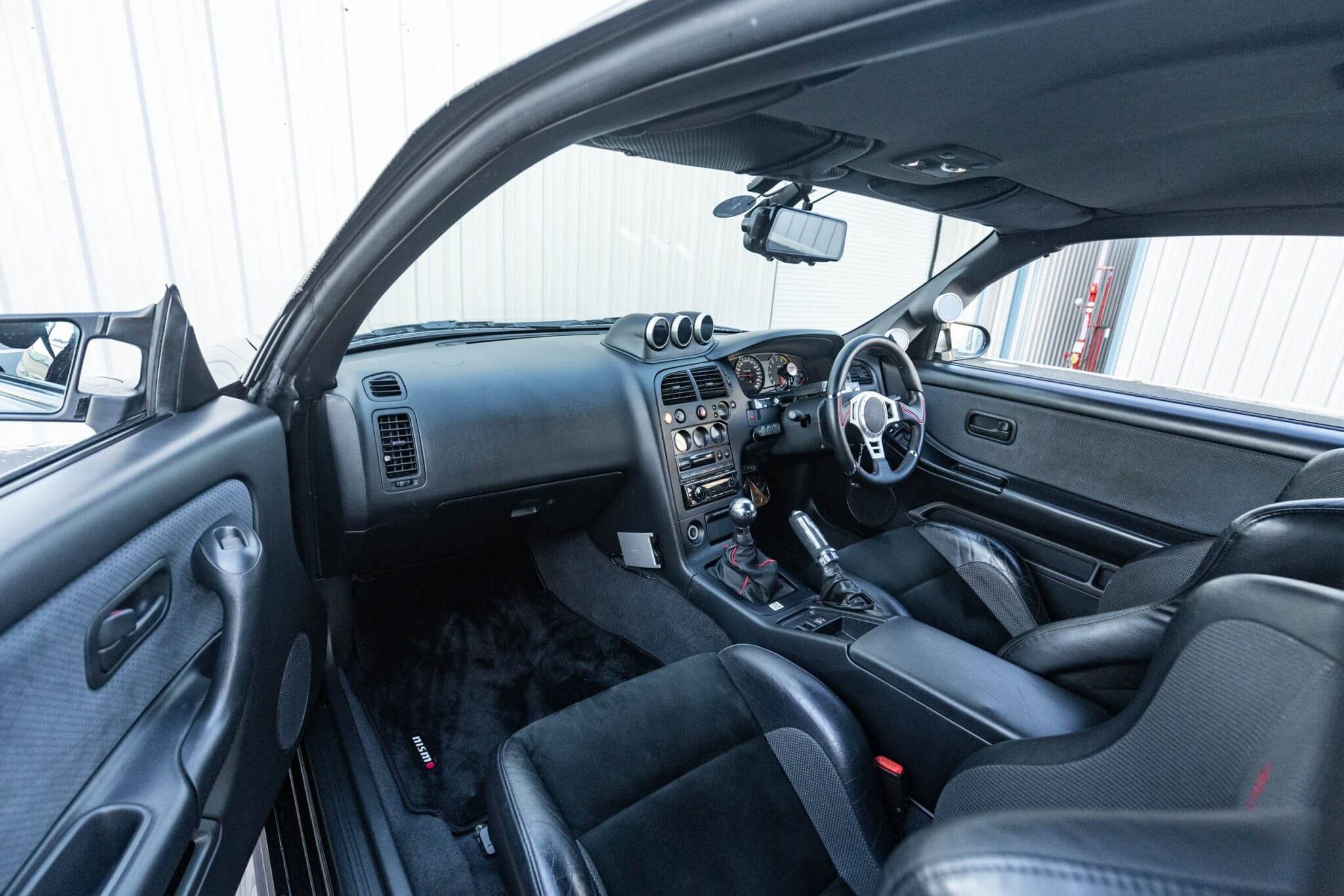 Bahagian dalam kabin dihiasi dengan sarung kerusi Recaro kulit berwarna hitam dipadankan dengan pengalas kaki Nismo dan pedal aluminium. Sistem stereonya menggunakan pemain CD dari Kenwood, sebuah dashcam, turbo timer HKS dan juga stereng aftermarket.