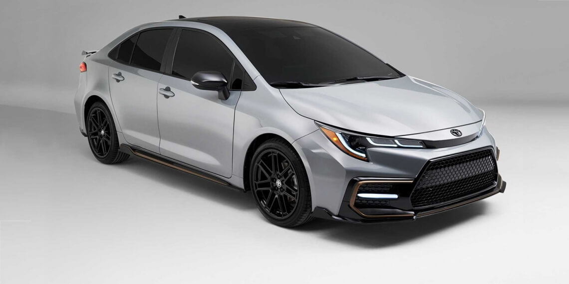 Corolla Apex Edition 2021 dapat dikenali menerusi bodykit hitam custom dengan kemasan tembaga, spoiler hadapan, perumah lampu kabus, skirting sisi dan diffuser belakang. Penampilannya dimantapkan lagi dengan penggnaan rim aluminium bersaiz 18 inci. Ia hadir dalam dua warna pilhan iaitu hitam dan putih dengan bumbung hitam.