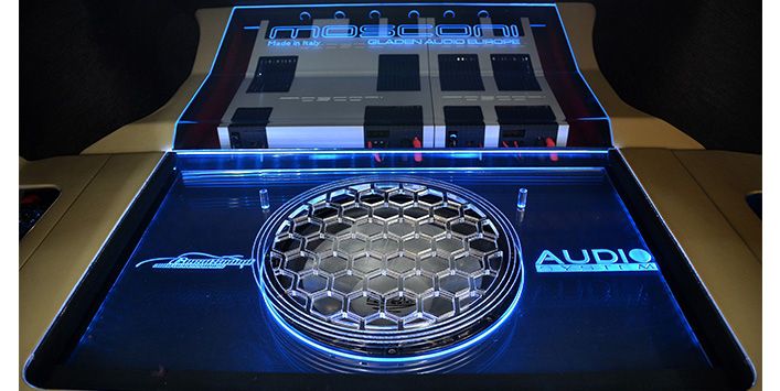 Pola pembahagian bunyi mid dan vokal sistem kereta ini melalui dua sistem berasingan iaitu unit aktif 5.1 channel dan juga unit pasif stereo. Susunan speakernya dibuat dengan penggunaan set yang sama. Di hadapan ialah pemasangan 2-way yang melibatkan unit speaker dan tweeter Audio System HX165 Dust MKII yang sebenarnya direka untuk sistem pasif (dengan crossover) dan dikuasakan oleh amplifier 4 channel Mosconi AS100.4. Tetapi dengan kemampuan pemproses AVH tadi, ia disalur kepada kuasa individu. Pengagihan bunyi tengah pula dibuat dengan pemasangan secara custom unit speaker Audio System HX-130 Dust. Unit ini datang bersama seunit tweeter yang turut dipasangkan selari dengan mid 4” tadi dan dikuasakan oleh seunit amplifier 2 channel Mosconi AS65.2 dengan kekuatan 210 watt pada 4 ohm.