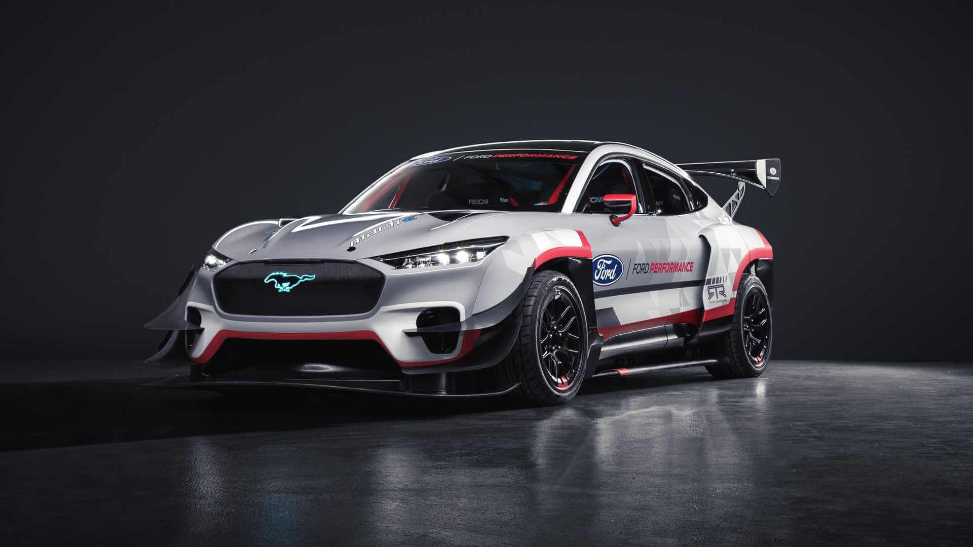 Pasukan pereka Ford dan RTR menggunakan banyak peralatan yang sama digunakan Ford pada kereta lumba dan program pengeluarannya. Satu ciri hebat pada Mustang Mach-E 1400 ialah tujuh motor atau tambahan lima daripada dua pada Mustang Mach-E GT. Tiga ditempatkan pada pembeza (differential) depan dan empat di belakang secara bertindih (pancake style) dengan aci pacu (driveshaft) tunggal menghubungkan kepada pembeza dan berfungsi untuk melaras kereta dalam pelbagai keadaan dari drift kepada perlumbaan litar.