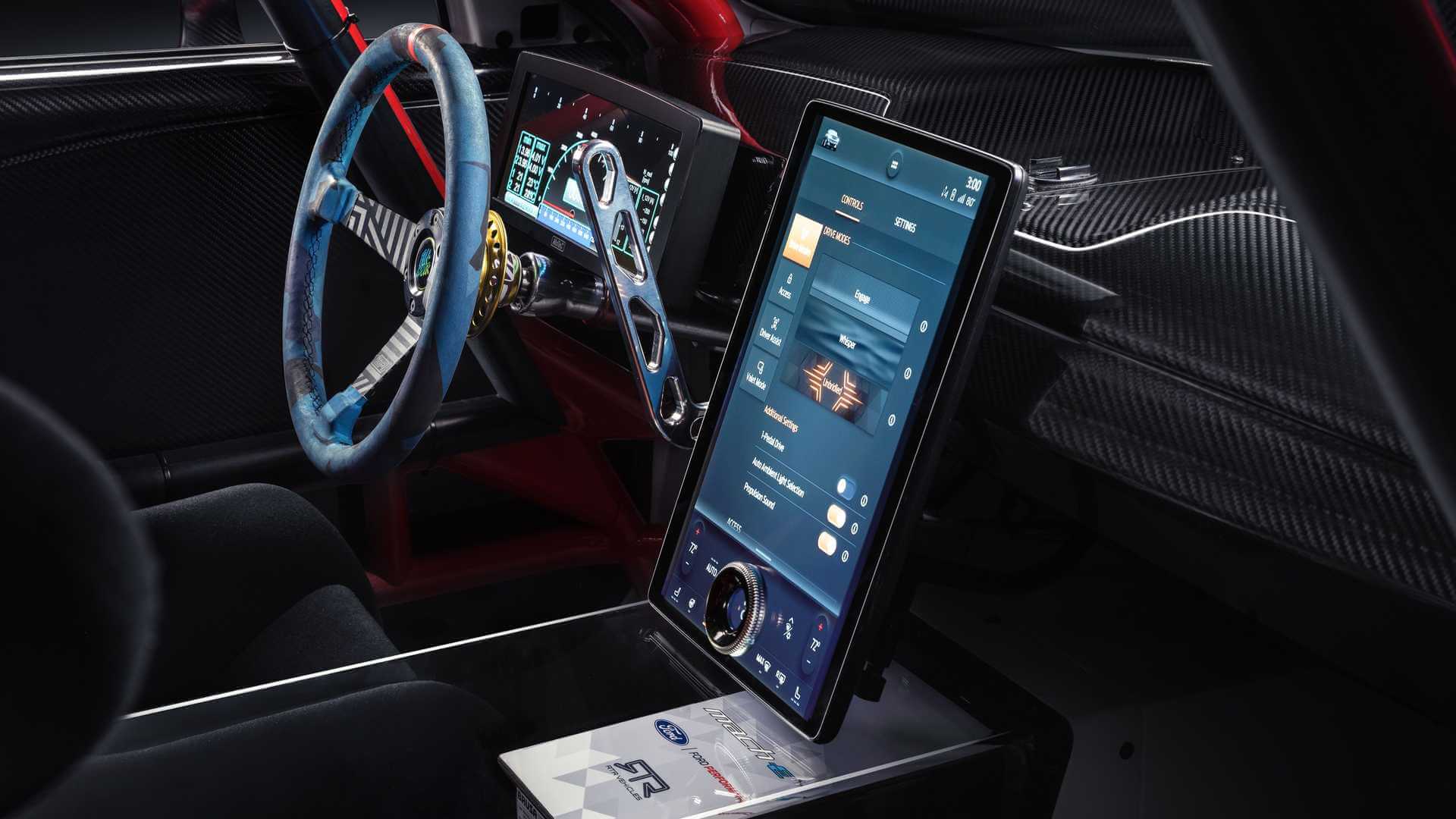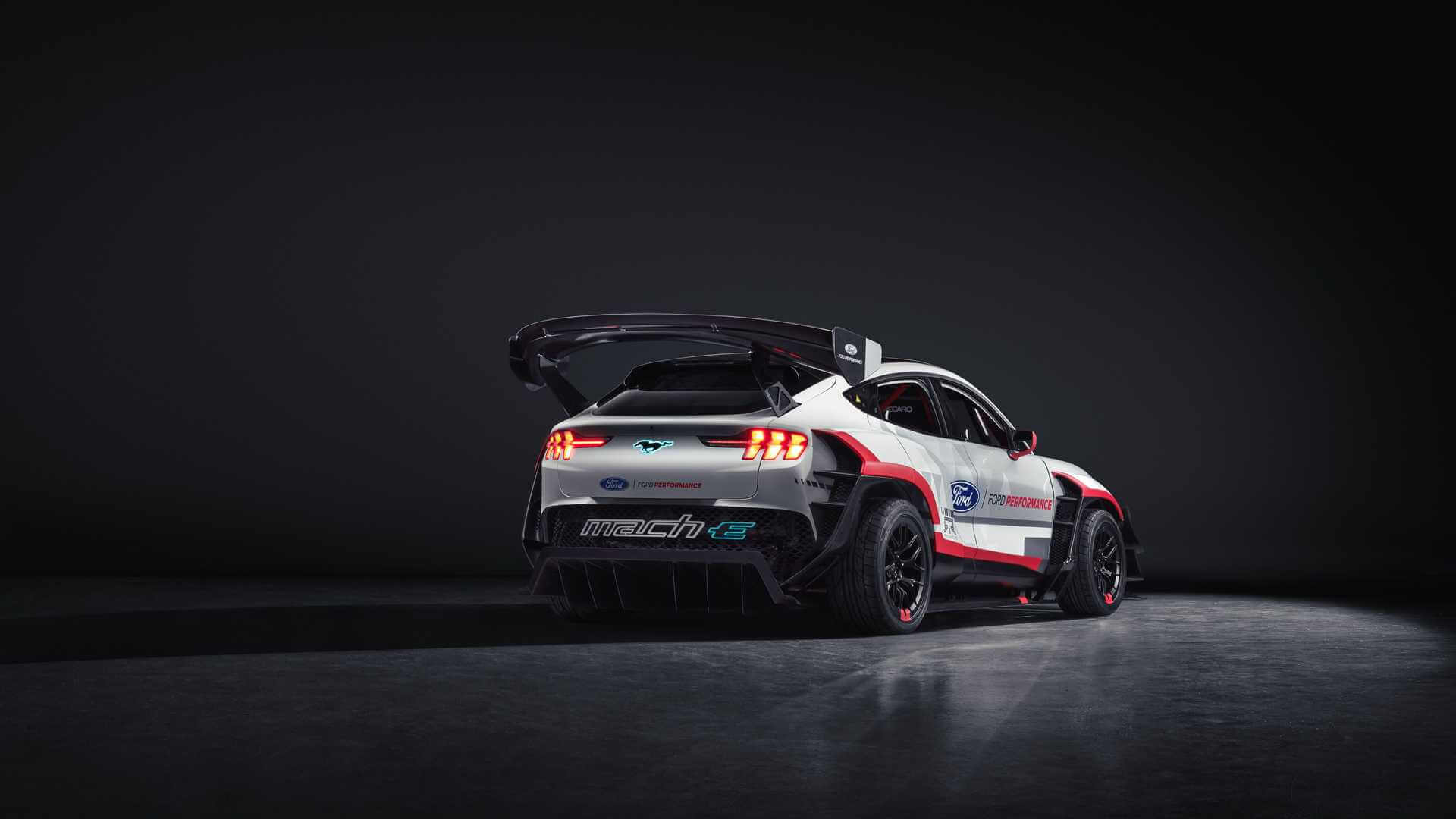 Mustang Mach-E 1400 menggunakan brek Brembo™ sama seperti kereta lumba Mustang GT4 dan sistem brek tangan hidraulik yang direka untuk drift yang menggabungkan kawalan rangkaian kuasa supaya dapat mematikan kuasa kepada roda belakang. Mustang Mach-E 1400 dijadual untuk dibawa ke perlumbaan NASCAR dan turut berfungsi sebagai kenderaan ujian bagi bahan baharu. Bonet Mustang Mach-E 1400 diperbuat daripada gentian komposit organik dan alternatif ringan kepada gentian karbon yang digunakan pada bahagian lain kereta.