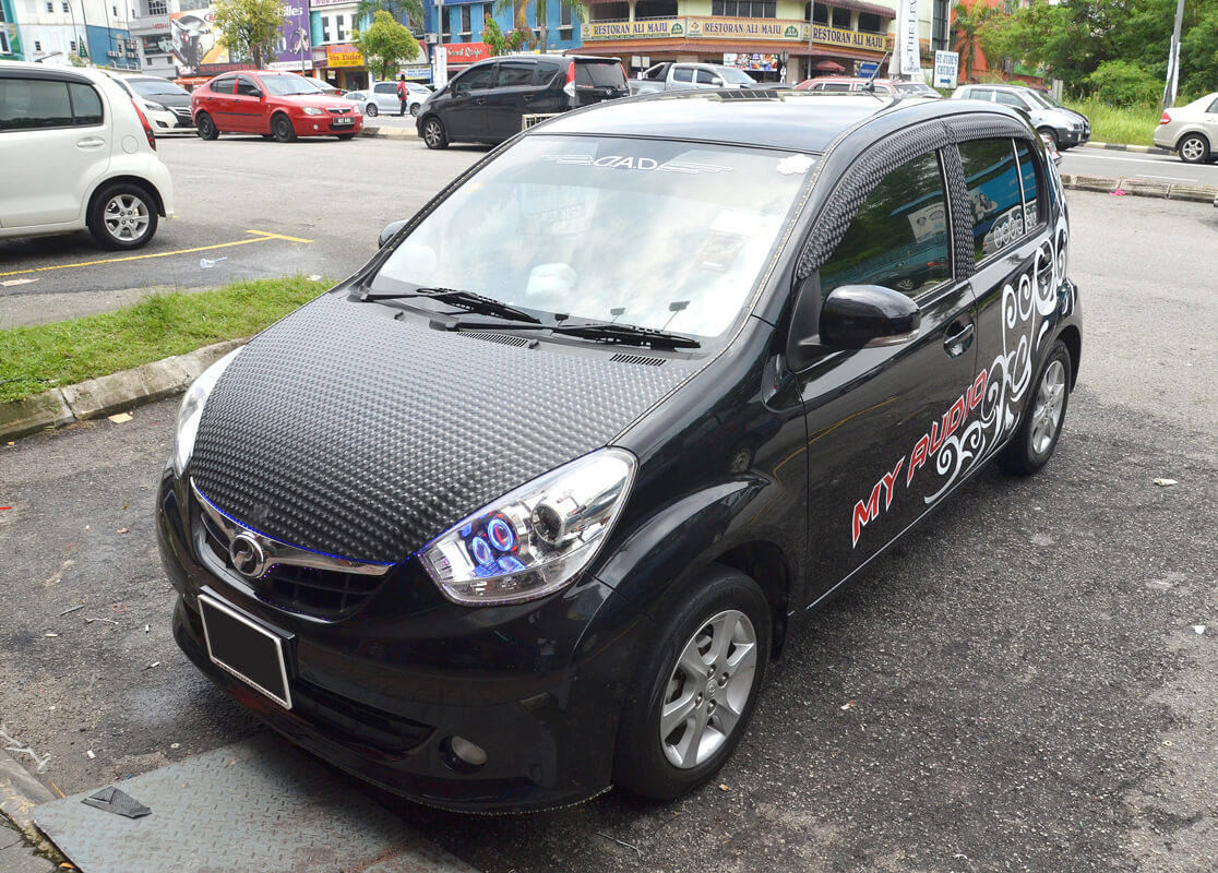 Kereta Perodua Myvi ini nampak menyerlah dari luar bila diimbas sekali pandang. ‘Kesan’ pandangan ini adalah sumbangan pelekat badan gaya batik bebas yang membalut separuh badannya. Sedangkan kereta ini tiada langsung bodykit asing malah rodanya juga masih dalam keadaan asal. Tiada perubahan. Tetapi, adakah dalam Myvi ini seringkas luarannya? Itulah persoalan yang bermain di fikiran saya.