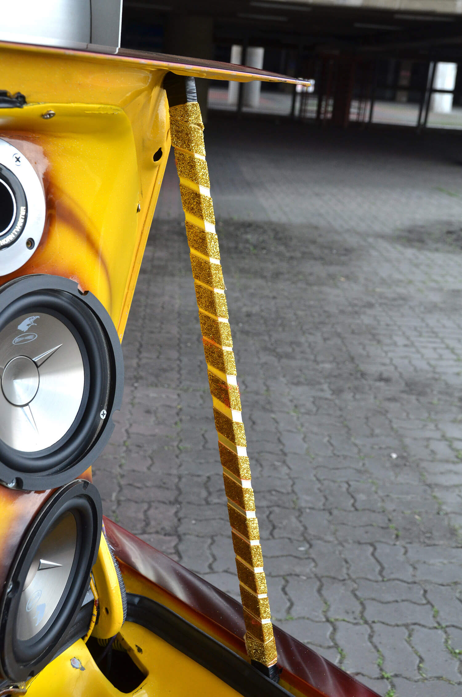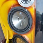 Tema begini mungkin sudah biasa bagi kebanyakan binaan sistem audio namun begitu, ia bukanlah satu kebiasaan juga bilamana bahan gentian kaca digunakan dengan meluas, lebih-lebih lagi untuk sepasang perumah woofer American Sound 12” jenis coil berkembar yang dipasang bersama amplifier monoblok Autotek Super Sport cukup untuk menggegarkan tapak pertandingan terbuka yang disertainya.