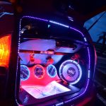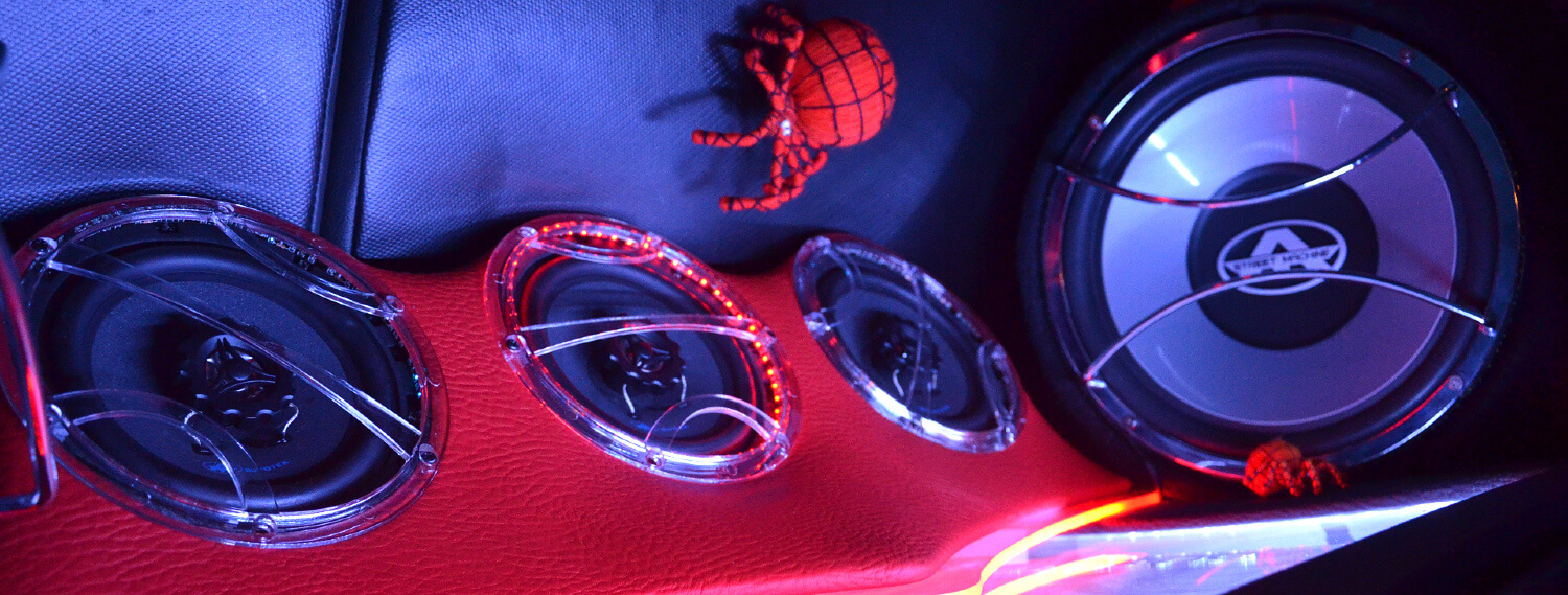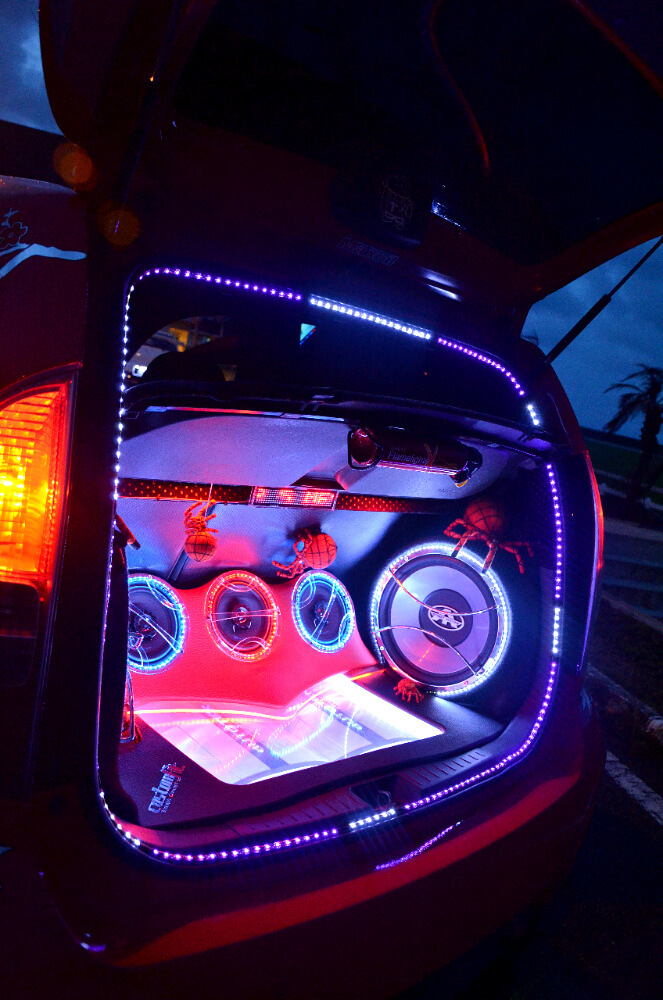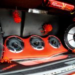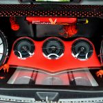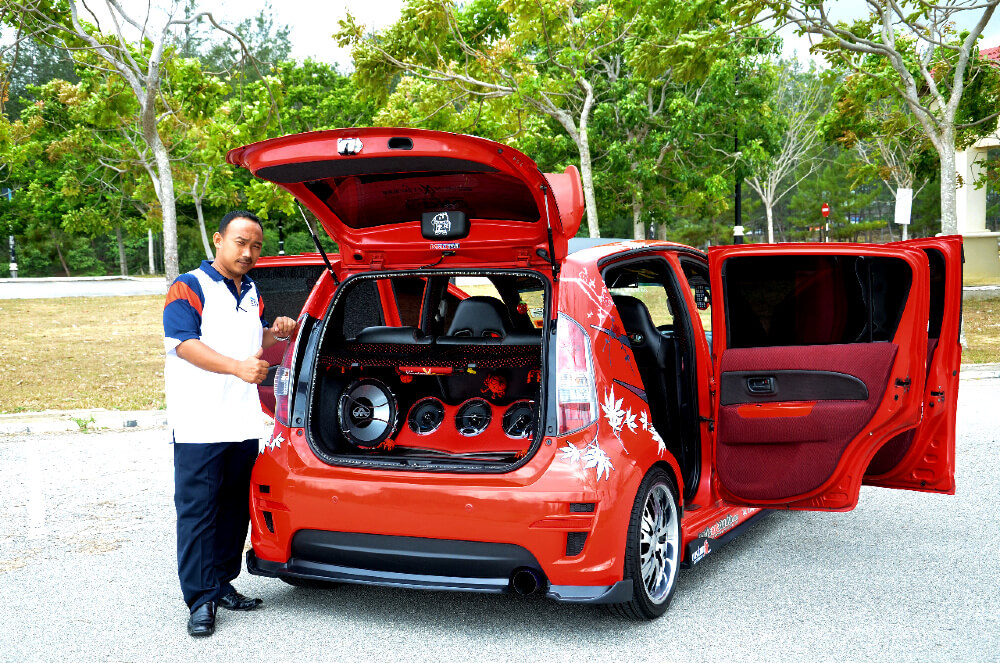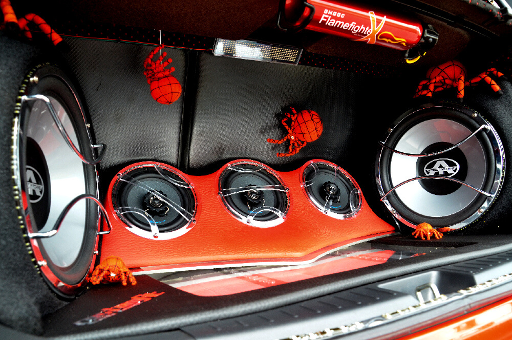 Bahagian tengah yang kosong tadi telah dipasangkan dengan tiga unit speaker yang didatangkan sekali dengan tweeter, speaker coaxial. Barisan speaker ini dibina untuk menyokong sistem bunyi belakang tatkala kereta ini digunakan untuk persembahan. Perumahnya diperbuat daripada kayu, tetapi sebelum itu, lantai but telah diubahsuai dengan membuang tayar ganti kepada lokasi 2 unit amplifier Autotek yang dilitupi perspek cerah. Gabungan peralatan ini dengan warna merah-hitam membuatkan ruang bagasi kereta ini sangat kemas dan garang.