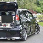 Tidak cukup dengan itu, kosmetik luaran kereta ini turut dikemaskini dengan set buatan custom sepenuhnya. Semuanya dibuat sendiri supaya hasilnya tidak sama dengan mana-mana Myvi yang perlu disainginya di pertandingan autoshow. Sebagai kemasan akhir, penggunaan trim krom dikenakan pada bahagian yang sesuai dan akhirnya pelekat bebas dilekap mengikut skema yang dikehendaki.