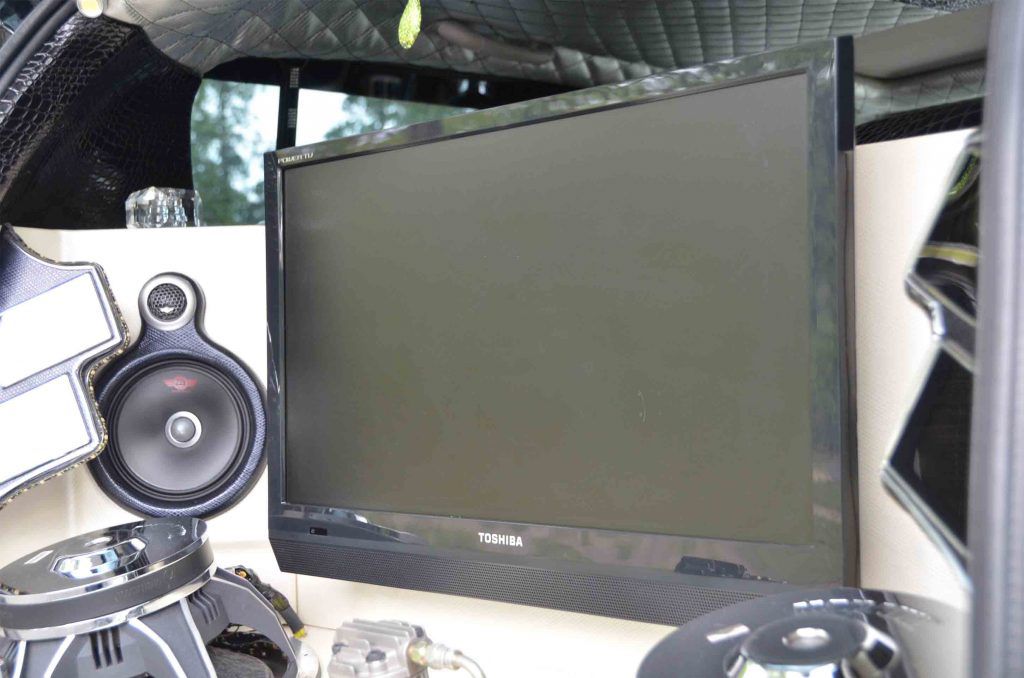 Senarai peningkatan audionya tidak banyak tetapi lihat pada fasa kedua penyempurnaan terhadap sistem ini. Kesan visual pada aspek penyampaian medianya menggunakan 23 buah monitor TFT kecil yang disebarkan ke semua tempat. 3 unit di setiap pintu, dua unit pada perehat kepala, 4 di dalam but belakang dan satu pada lantai konsol tengah kerusi hadapan. Tidak dipasang begitu sahaja, setia unit ini dihiaskan dalam perumah khusus menggunakan tema beach hitam di atas petak yang dibuat khas terlebih dahulu.