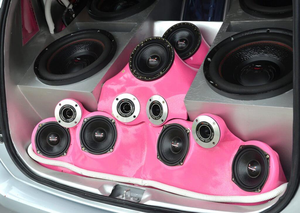 6 unit mid bass Anaconda dan 4 tweeter Focal tambahan yang lain disempurnakan dengan kerja-kerja fabrikasi gentian kaca yang meliputi ruang antara woofer tadi. Kesemua speaker yang disenaraikan tadi dikuasakan pula oleh seunit lagi amplifier Black General 4 channel B-2480 menjadikan jumlah keseluruhan amplifier ini digunakan sebanyak 3 unit.
