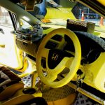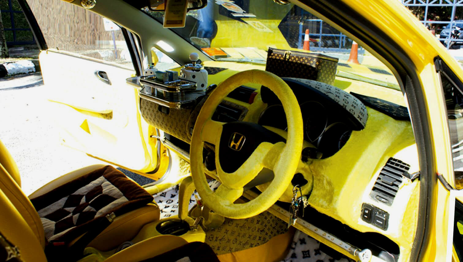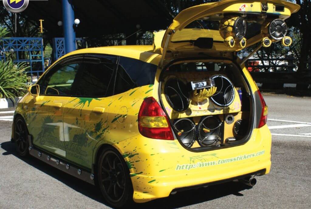 Jika anda peminat kereta yang selalu mengunjungi autoshow dan audioshow di sekitar kawasan lembah Klang, pasti anda sudahpun bertemu dengan kereta Jazz kuning ini. Bercelorengkan tompokan warna hijau dan kursif perkataan Jepun menghiasi dinding, menimbulkan suasana seakan berada di negara matahari terbit itu. Ia seakan penegasan kepada umum, Jazz kuning yang comel ini sentiasa bersedia untuk meledak pada bila-bila masa sahaja. Kalau tak percaya, cubalah dekat!