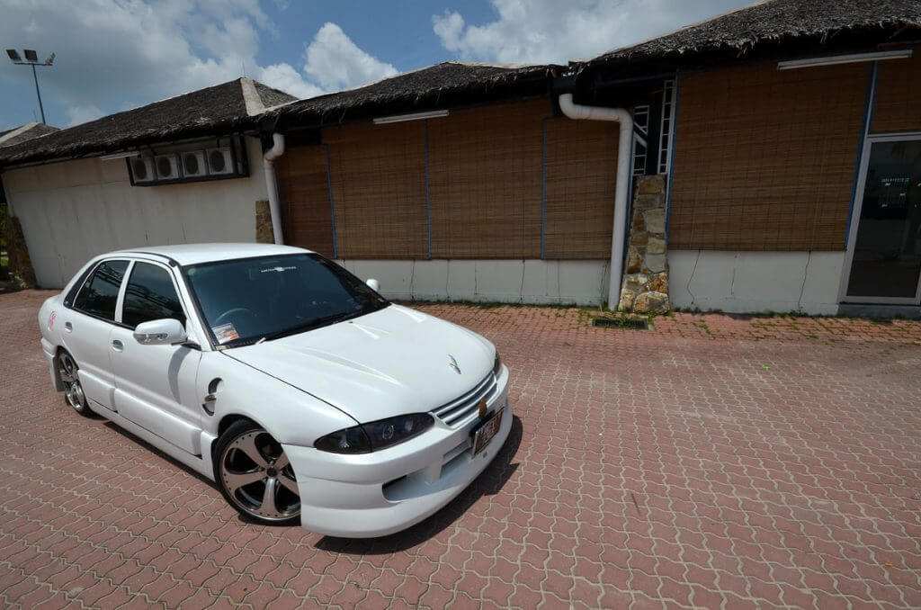 Model yang bergaya di sisi kereta ialah pemilik Myvi yang pernah kami siarkan tidak lama dulu. Namanya Rainee Tee tapi bukan kisah amoi ni yang nak kami ceritakan. Dah tentulah pasal kereta putih. Kereta ni milik Arashi Bodykit yang tidak perlu diperkenalkan lagi. Beberapa buah kereta projek mereka pernah tersiar sebelum ini.