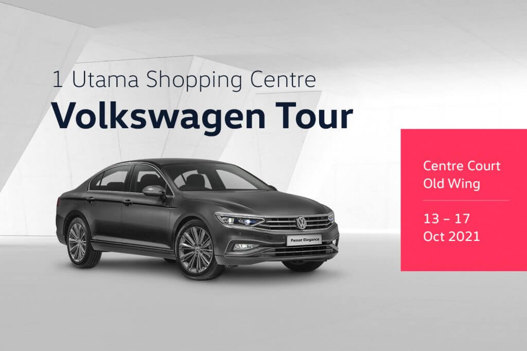 Bermula dari 13 Oktober sehingga 17 Oktober ini, para peminat atau yang berminat mahu memiliki kereta Volkswagen boleh datang ke 1 Utama Shopping Centre di bahagian Centre Court, Old Wing). Dianjurkan Volkswagen Passenger Cars Malaysia (VPCM), pelbagai kelebihan yang bakal diperolehi sekiranya anda mengunjungi Volkswagen Tour ini.