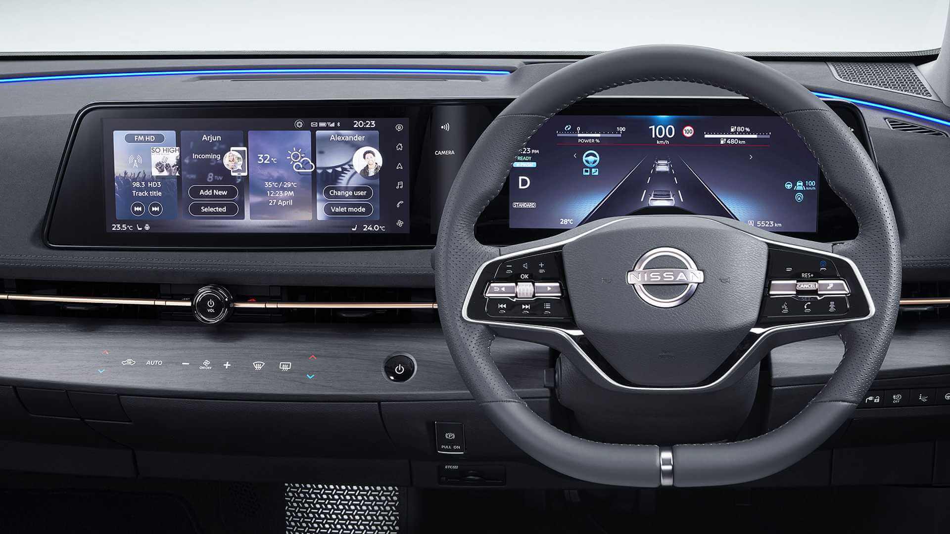 Menjengah ke bahagian dalam, keseluruhannya memang nampak segar. Sekali pandang macam dalam café pun ada. Lantai dan papan pemuka berbentuk rata memang membuatkan dalaman nampak lebih luas. Dua unit paparan bersaiz 12.3 inci memang membuatkan keadaan nampak teratur dan segala info kelihatan lebih mudah diakses. Tiada lagi butang-butang fizikal untuk ditekan dan digantikan dengan kawalan sesentuh yang lebih moden. Ianya hanya akan dapat dilihat bila enjin dihidupkan. Illiminasi LED memang satu keajaiban dalam dunia automotif.