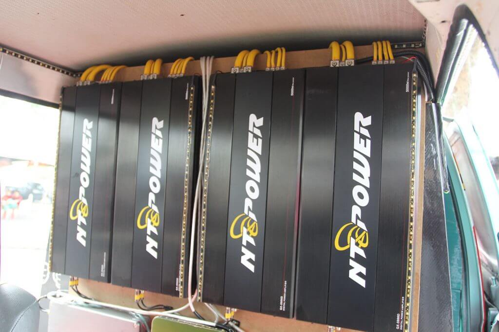 Sistem audio Suzuki Carry dengan penalaan SPL ini tidak berakhir lagi, masih ada bahagian yang tertinggal dan ia paling penting khususnya untuk sistem jenis ini yang mementingkan kekuatan dan tekanan. Laluan keempat ini khas untuk menghidupkan gugusan woofer yang terdiri dari 8 unit kesemuanya. Bagi memberikan kuasa yang cukup rata, sebanyak 4 unit amplifier monoblock NT Power QX-5000D. Ya, untuk laluan keempat ini yang telah dipecahkan lagi kepada 4 laluan baru, tiada bantuan preamp digunakan. Kalau anda masih ingat, pemain ini sendiri sudah mempunyai amplifier 4 channel miliknya sendiri dan ia sudah cukup untuk menambahbaik mutu bunyi dengan bantuan setiap amplifier monoblock tadi.