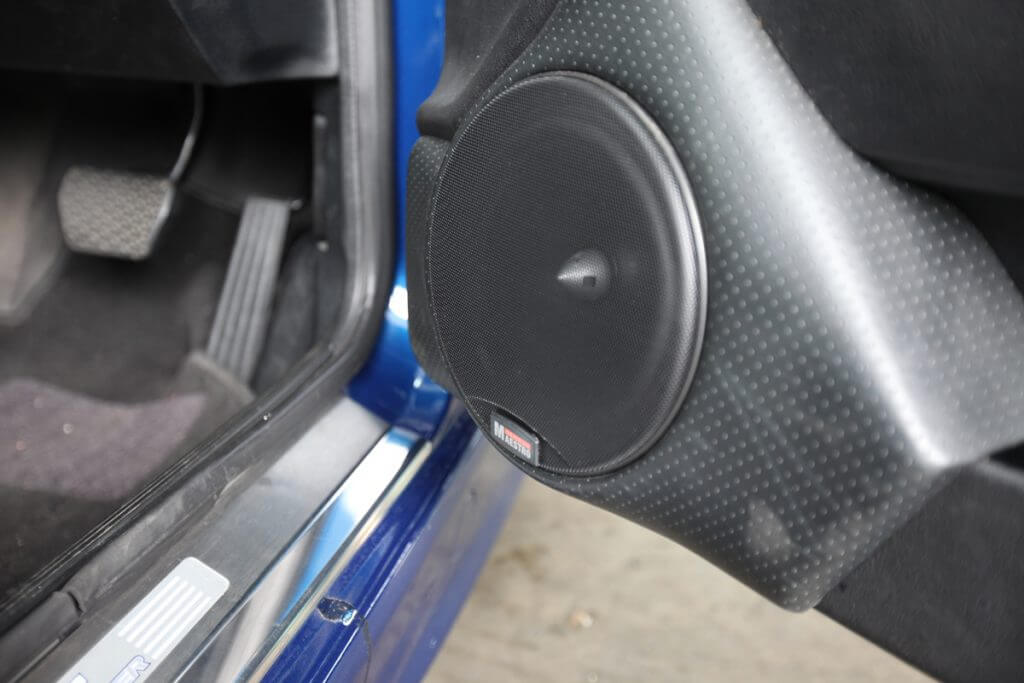 Seterusnya, installer telah memecahkan isyarat yang dipancarkan oleh pemain utama tadi kepada 3 laluan yang didahulukan oleh seunit amplifier untuk setiap laluan. Unit amplifier pertama merupakan amplifier 4 channel Crossfire yang berfungsi memacu speaker yang dipasang untuk sistem audio bahagian dalam kereta atau lebih tepat lagi di kabin. Dua unit tweeter GermanMaestro dari set komponen SV6509 dan mid range Hertz HL70 digunakan untuk kelengkapan audio di bahagian ini. Setiap satu unit dari tweeter dan mid range tadi telah dipasangkan di tiang A di kedua-dua belah kereta. Ini diikuti pula dengan laluan kedua yang dikuasakan oleh seunit amplifier 2 channel Crossfire, sekaligus memacu dua mid bass GermanMaestro juga dari set komponen yang sama dan diletakkan di panel pintu di kedua-dua belah bahagian.