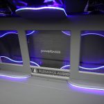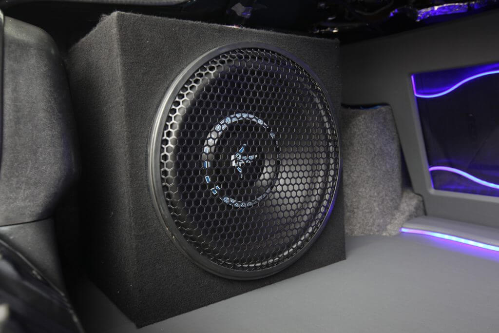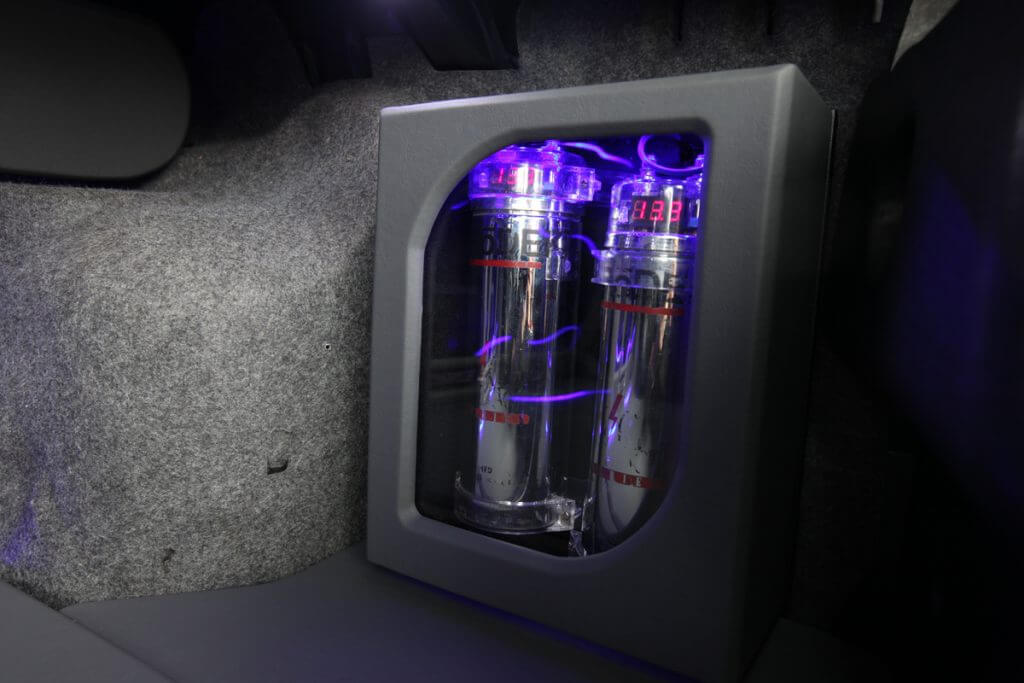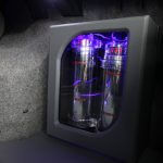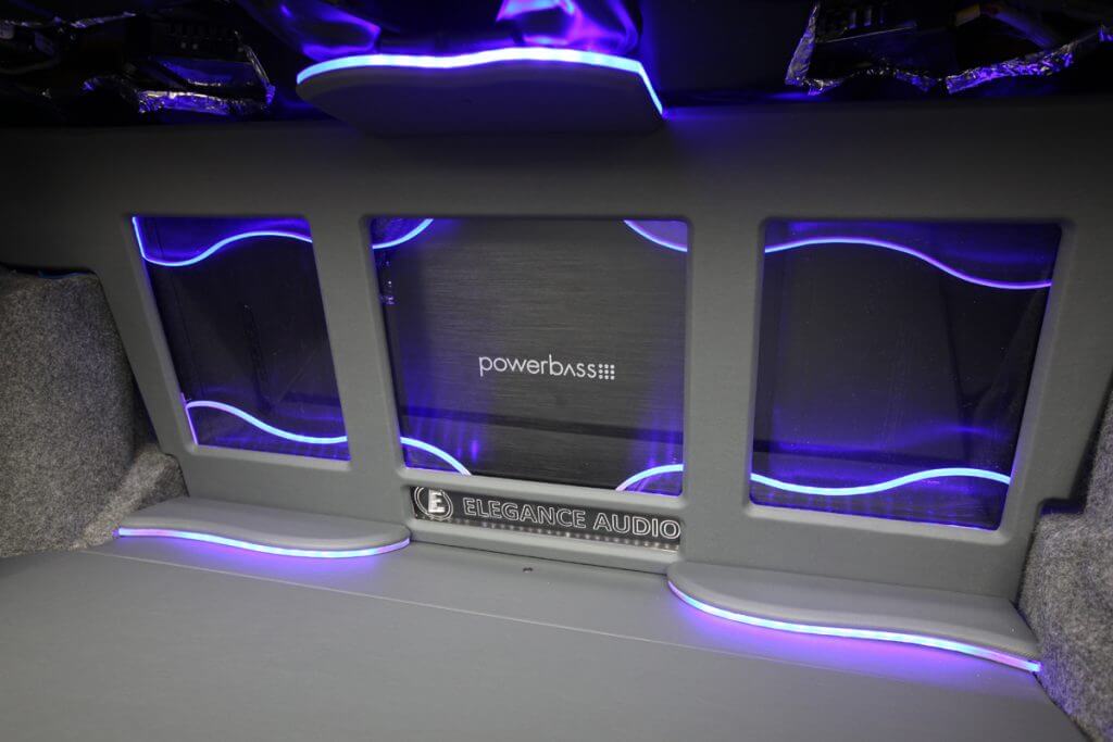 Pemasangan seumpama ini cukup sinonim dengan sistem talaan SQ 3-Way dalam memastikan penghasilan staging yang tepat. Agar keharmonian bunyi yang dihasilkan dihantar ke rongga telinga dengan sempurna. Melengkapi sistem audio ini adalah seunit woofer 12” dari Crossfire yang dipacu oleh seunit amplifier monoblock Powerbass. Kedudukannya pula adalah di bahagian bonet tetapi dipasangkan di dinding, secara tidak langsung menjimatkan pemakaian ruang. Beralih ke bahagian ini, kesemua amplifier yang digunakan awal tadi turut dipasangkan di sini dengan teknik yang sama. Bagi memberikan sentuhan terakhir, installer telah menutup bahagian ini dengan kaca akrilik bersama jalur-jalur lampu LED. Bijak, bukan?
