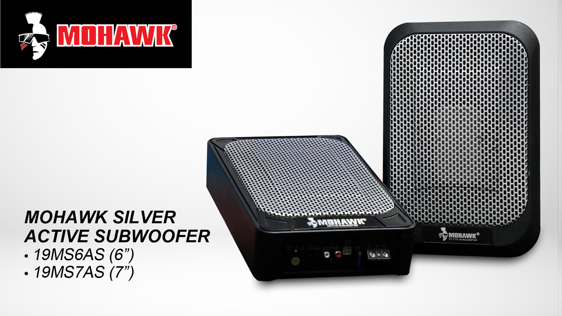Selain menjimatkan penggunaan ruang, aktif subwoofer ini juga menghasilkan bunyi yang padu dan paling penting, tiada lagi masalah untuk menyimpan barang. Antara aktif subwoofer yang ditawarkan Mohawk termasuk yang berbentuk petak iaitu Mohawk Silver Active Subwoofer 19MS6AS (6”) dan 19MS7AS (7”), Mohawk Silver Active Subwoofer 19MS8AS (8”) dan 19MS10AS (10”). Mohawk turut menawarkan aktif subwoofer yang didatangkan bersama kotak iaitu Mohawk M1 Series Active Subwoofer M1-88AS (8”) dan M1-1010S (10”) juga satu aktif subwoofer istimewa, Mohawk M1 Spare Tyre Active Subwoofer 21M1-11AS (11”).