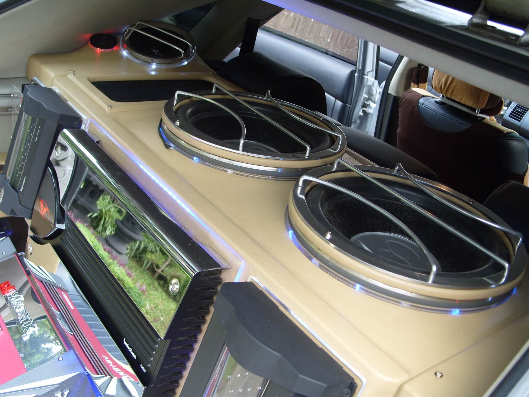 Menerusi Radius Audio, pencarian saudara Maesella berakhir. Adakah anda bersetuju dengan mutu suara yang dicari-cari oleh beliau? Baiklah, kita mulakan sesi menyiasat jentera I.C.E yang digunakan untuk memenuhi impian Maesella ini. Jika dilihat secara kasar, sistem I.C.E yang dipikul Harrier ini terdiri dari 2 unit subwoofer prestasi ultra jenama Clif Designs CD 1200C dengan kuasa maksima 1200 watt. Didatangkan dengan dwi-koil suara 2 ohm dan strontium magnet berkembar yang mana berat setiap satunya sekitar 25 kg.