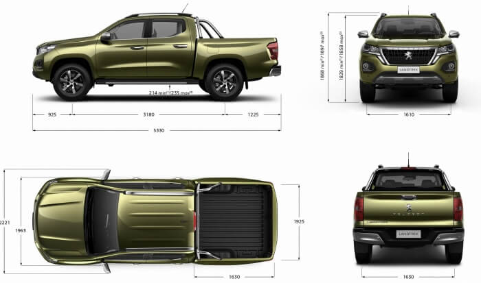 Enjin turbodisel hanya dipadankan dengan transmisi 6 kelajuan manual Getrag. Ia akan dipadankan dengan pilihan 4×2 dan juga 4×4. Pecutan 0-100km/jam dibuat dalam masa 11.2 saat dan kelajuan maksimanya ialah 177km/jam. Antara kelebihan Landtrek ialah ialah ia menggunakan rekaan papan pemuka yang moden seperti kereta Peugeot yang lain. Anda akan menemui roda steering yang diambil dari model 3008 dan juga unit skrin sesentuh 10 inci daripada model 5008. Mungkin antara rekaan yang paling menarik bagi sebuah pikap.