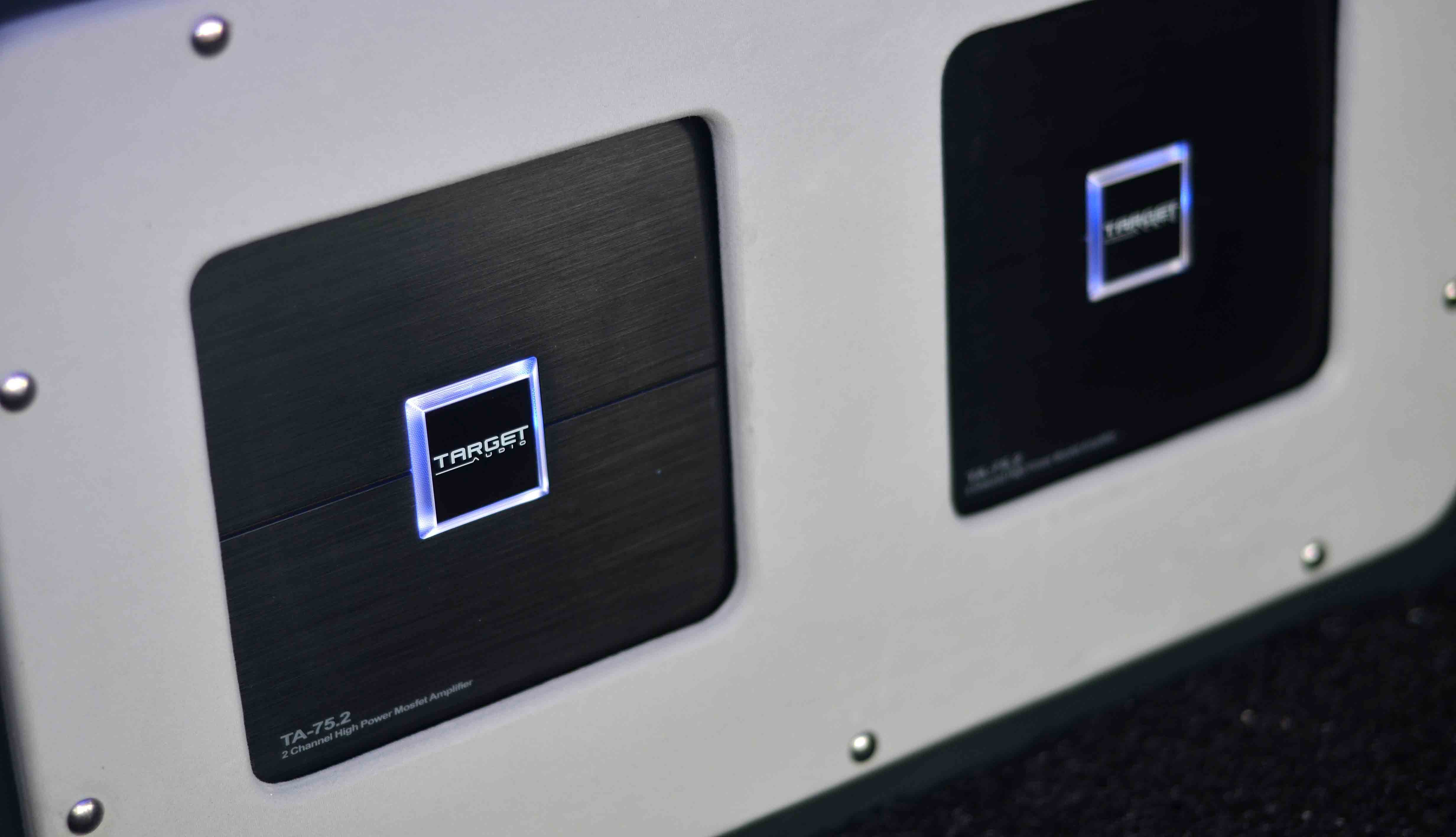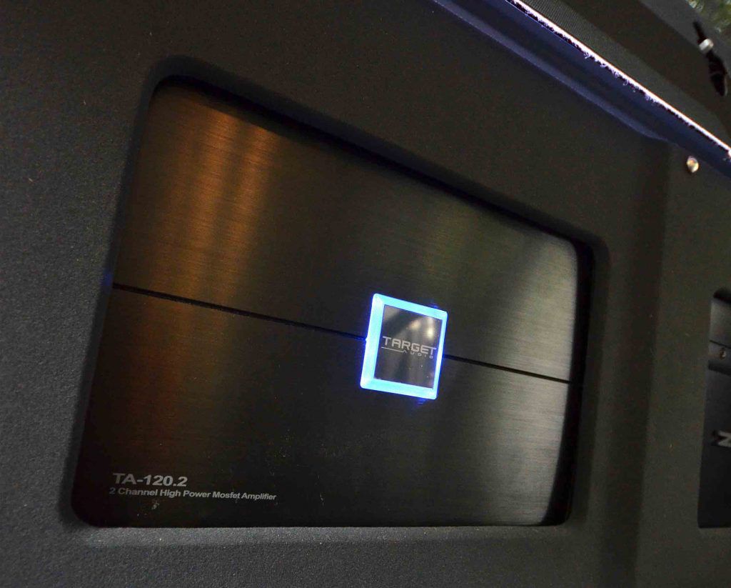 Dari situ, installer sistem audio ini memadankan sebanyak tiga unit amplifier dengan fungsi yang berbeza bagi setiap jenis speaker yang dipasang. Untuk menguatkan bunyi frekuensi tinggi, seunit amplifier Target Audio 74.2 jenis 2 saluran digunakan semata-mata untuk membekalkan kuasa kepada 2 unit tweeter Phoenix Gold yang dipasang tinggi pada tiang-A kenderaan untuk mendapat staging bunyi yang baik.