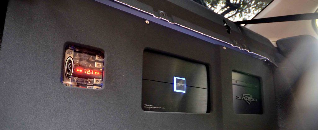 Aksesori-aksesori audio seperti woofer, amplifier dan juga DSP telah diletakkan di dalam satu perumah buatan custom pada ruang di antara but penyimpanan barang dan tempat duduk belakang. Perumah tersebut dibina dari bahan kayu dan dibalut semula dengan karpet berwarna hitam bagi memberi ilusi seolah-olah perumah tadi ialah sebahagian daripada komponen OEM kereta. Ruang yang digunakan juga adalah kecil, jadi ruang penyimpanan barang di dalam but masih lagi luas untuk menyimpan bagasi dan beg golf – seperti apa yang dikehendaki oleh pemilik kereta ini. Sistem audio seperti ini cukup praktikal dan masih mampu memberi reproduksi bunyi yang baik. Inilah sistem yang diimpikan oleh setiap lelaki bekeluarga untuk kereta mereka.