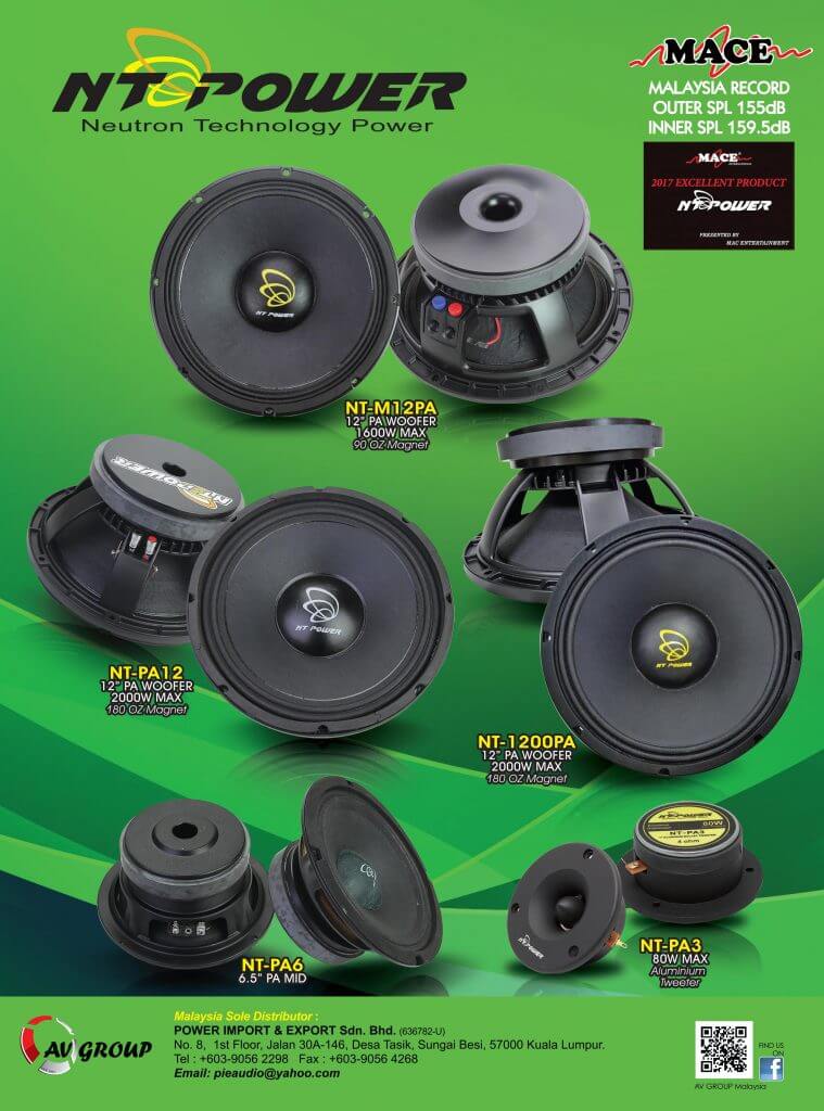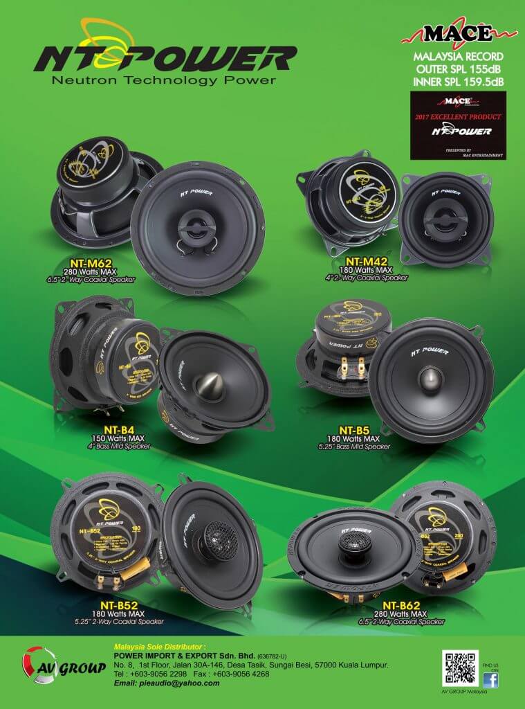 Bagi makluman anda, NT Power sering menjadi pilihan dan menempa nama terutamanya di pertandingan audio tempatan dan pernah mencatatkan rekod tersendiri. Antara barisan produk yang dikeluarkan oleh NT Power adalah speaker PA. Pihak NT Power telah membina barisan speaker PA khusus untuk kegunaan sistem audio kereta.
