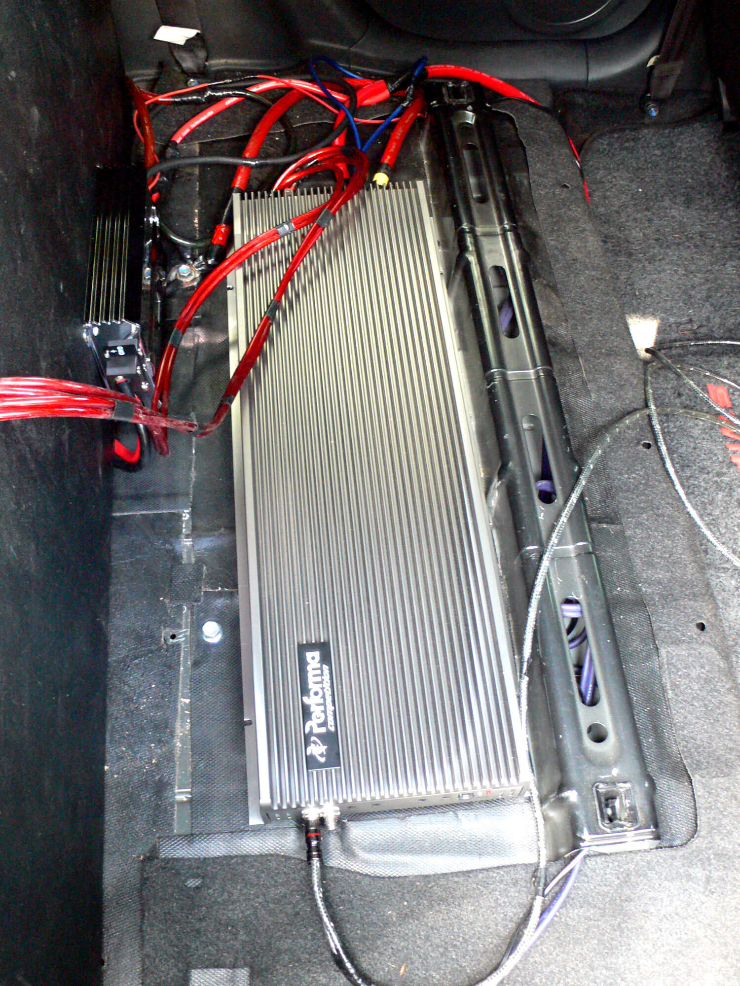 Bagi menguasakan subwoofer ini, installer telah memilih amplifier Performa Competition. Demi memastikan paduan bunyi yang dihasilkan adalah tepat, installer telah meletakkan perumah tadi di kabin belakang. Bukan itu sahaja, untuk mendapatkan bunyi bass yang mantap, installer telah memasang sound proofing Allum-Mat di panel pintu.