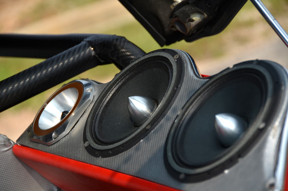 Konfigurasi mid bass dipecahkan kepada dua laluan utama dengan penggunaan 4 speaker mid bass Q Mobile berukuran 6” dan 2 unit horn tweeter juga dari Q Mobile. Setiap satu daripada gugusan speaker ini dipandu oleh amplifier Alpine 4 channel dan untuk tidak mengelirukan pemasangan, kesemuanya ditempatkan di bahagian yang sama di mana woofer dipasangkan. Kelompok yang boleh ditegak atau dibaringkan ini mungkin nampak kreatif tetapi pemasangannya adalah mimpi ngeri kerana wayar yang berselirat dibawahnya perlu dipasang dengan sangat kemas. Silap haribulan, kereta boleh jadi unggun api!