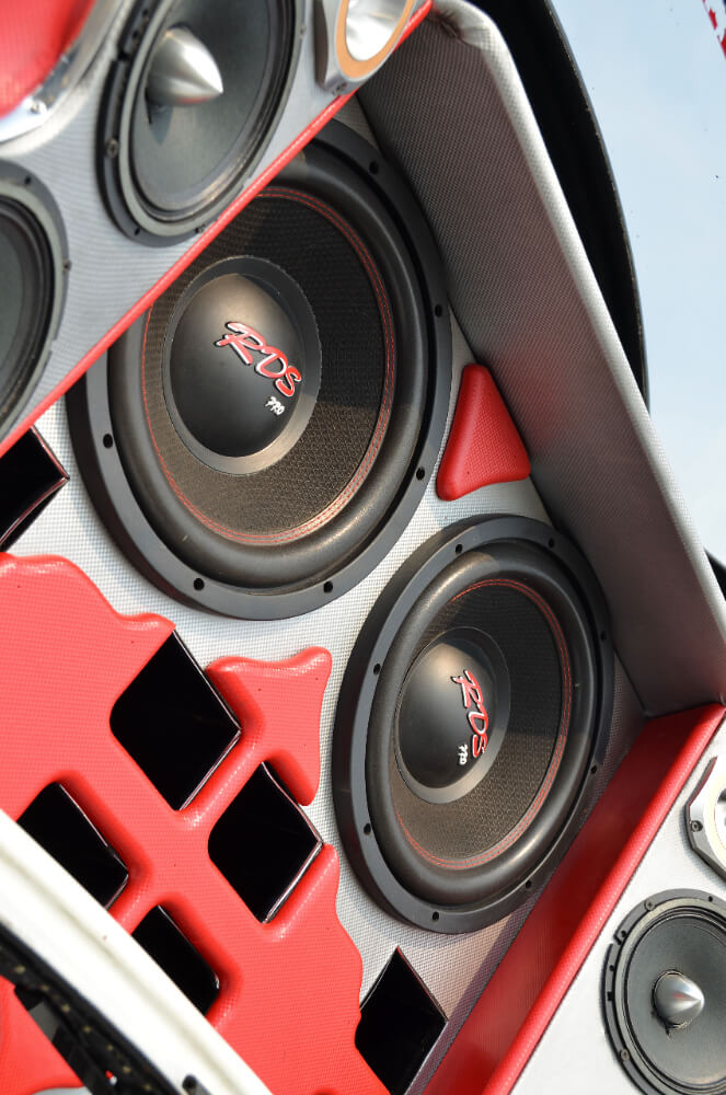Pemasangan woofer dibuat dengan rekaan sebuah kekotak khas yang dianjak ke bahagian belakang kereta. Ia dipasang pada perumah khas yang boleh didiri dan dibaringkan secara manual. 4 unit woofer berukuran 12” RDS ini mendapat kuasa daripada amplifier monoblock Audio Quart AQ-HC30D monoblock kelas D. Untuk mengemaskannya, amplifier monoblock ini dipasangkan di bahagian lantai tempat duduk belakang dan ditutup dengan arkilik rekaan custom.