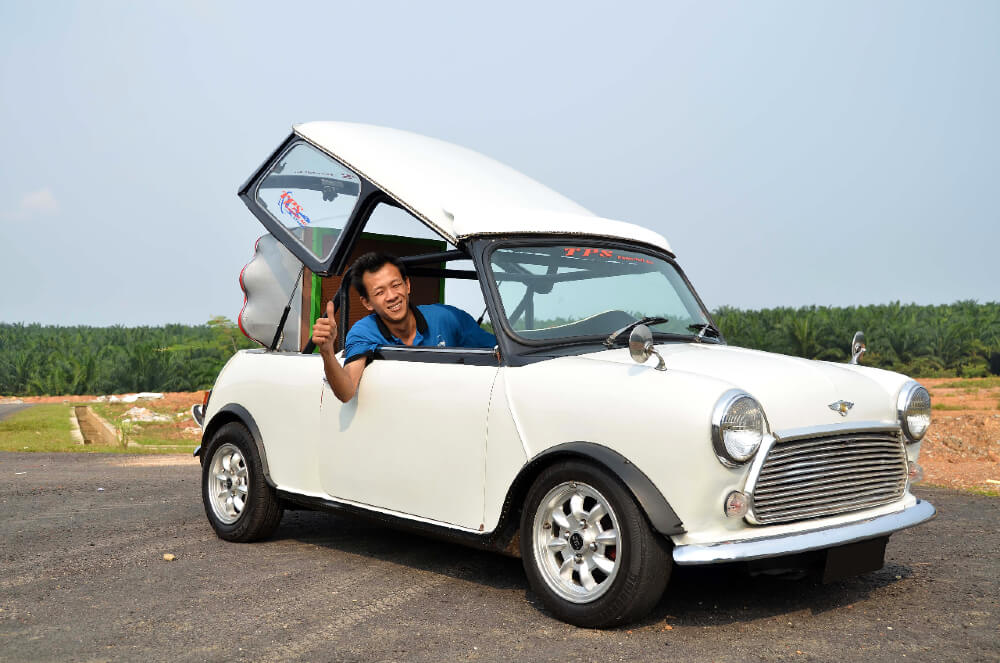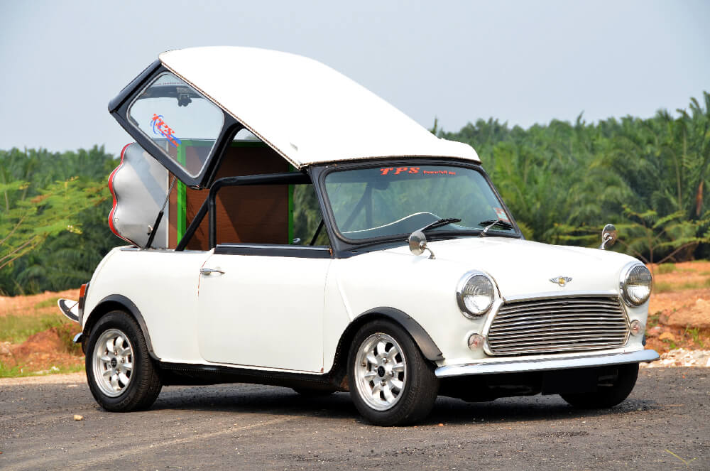 Satu sahaja yang boleh saya katakan tentang kereta ini. Ia unik. Unik bukan sahaja kerana konsep pemotongan bumbungnya yang kreatif, tetapi pemasangan sistem audio, idea untuk mengolah Mini menjadi ‘convertible’ jenis manual dan pemasangan enjin 660cc dari Kancil, nyata memang terbaik.