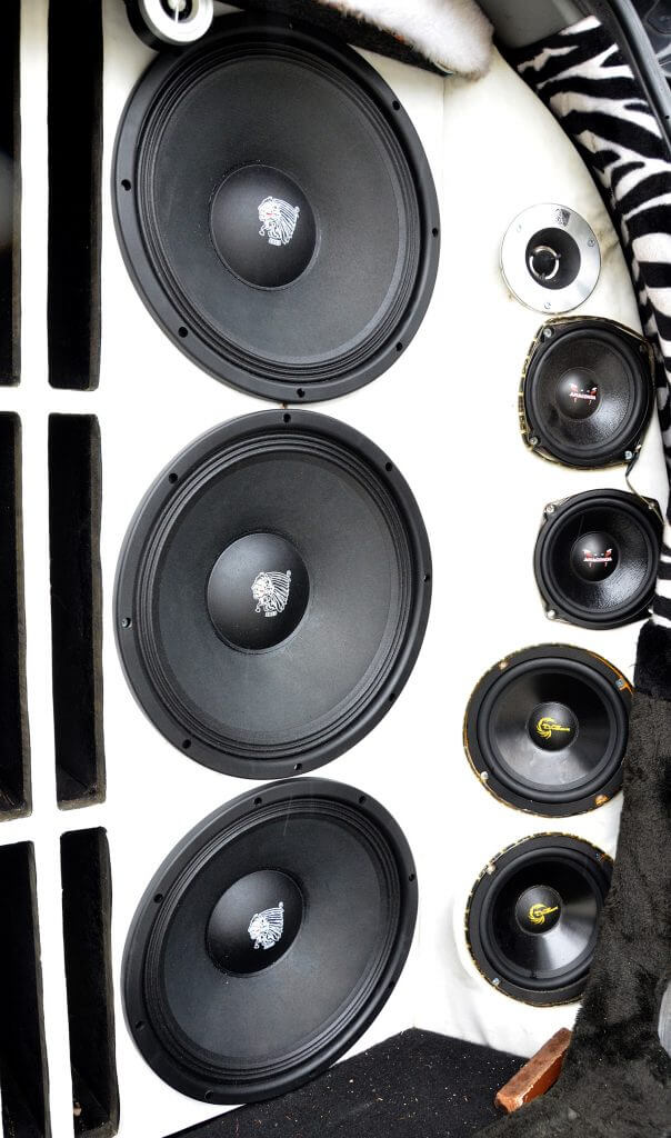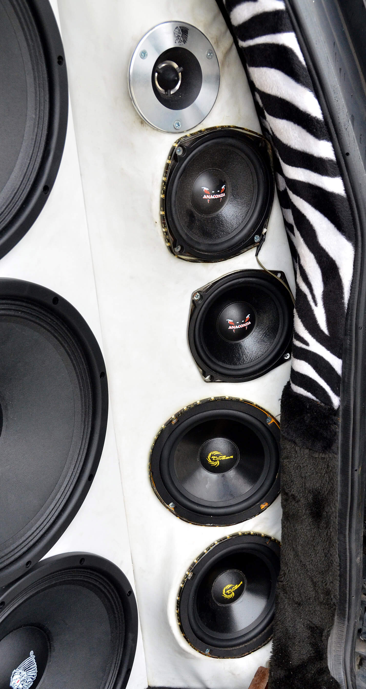 Kelompok sistem bunyi kereta ini semuanya berada di bahagian belakang. Bersama woofer tadi ialah 4 unit mid bass 6” Alfa Linear, 2 unit mid bass 5 ¼” Anaconda dan 2 unit horn tweeter Horizon. Kesemuanya dipasang pada bahagian sisi yang ditinggalkan sewaktu pembinaaan awal dan kemasukan speaker ini memadatkan ruang dan tiada apa lagi yang tinggal.