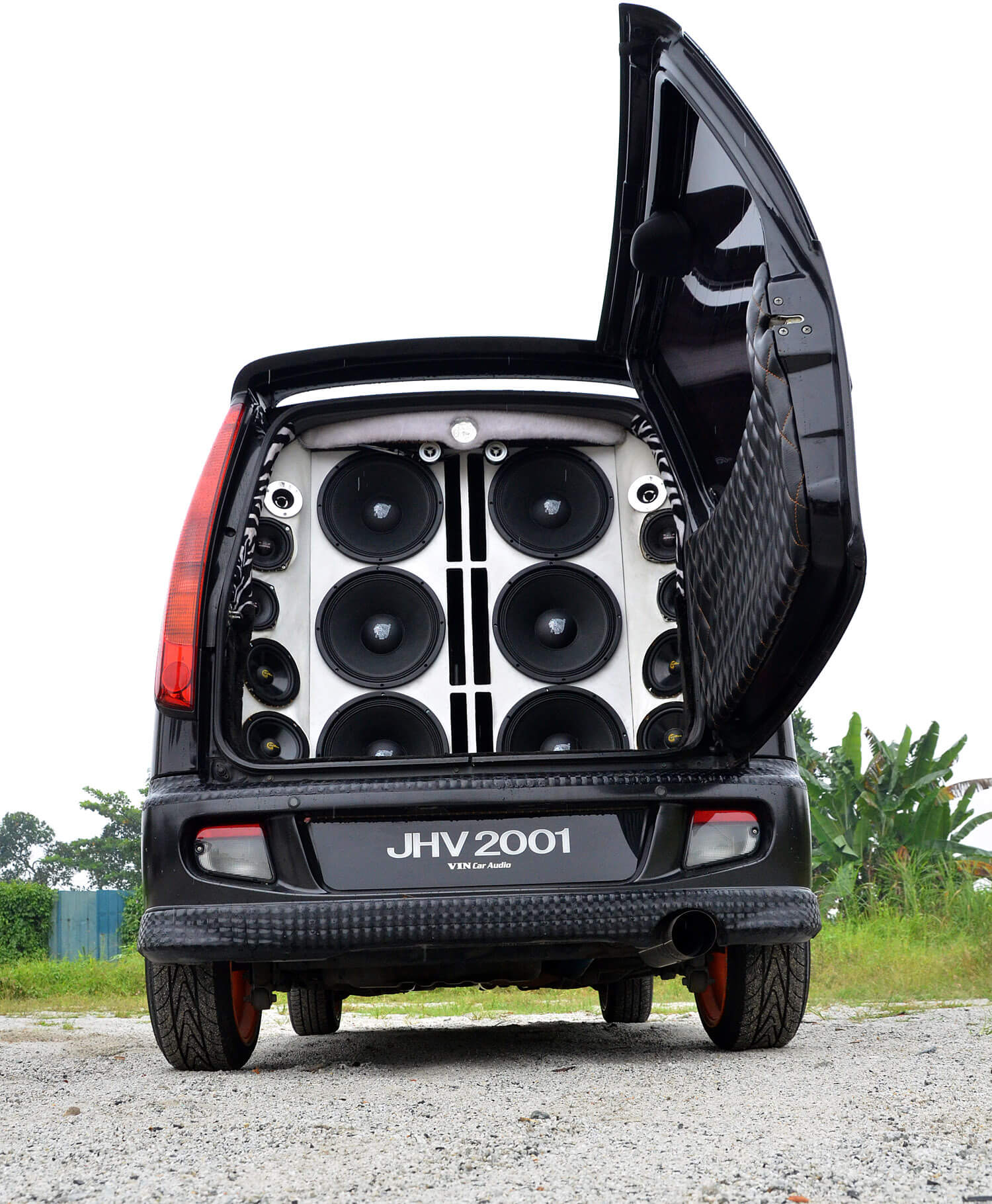 Ini satu contoh manipulasi ruang yang membolehkan sebuah kereta kompak berjaya dijadikan kereta demo atau hobi yang berbaloi. Pembinaan yang dilakukan oleh Vin Car Audio dari Kulai ini dilakukan dari peringkat awal dengan pola pemasangan yang sistematik. Pertama sekali, kerusi belakang dikeluarkan, seluruh bahagian dalaman ditanggalkan dan pendawaian dibuat di dasar lantai kenderaan menggunakan kabel berprestasi tinggi yang dialas dengan penebat kabel terbaik yang ada di pasaran.