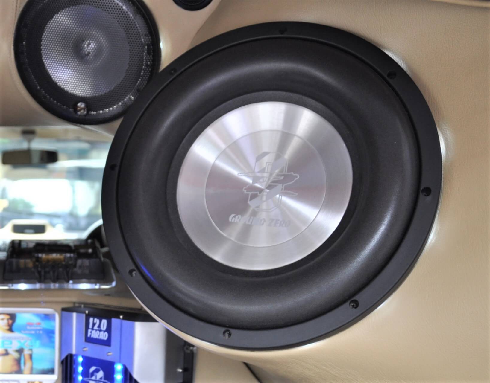 2 unit amplifier 2 channel Ground Zero pula digunakan untuk memacu speaker dan tweeter Ground Zero. 1 unit memacu 4 unit speaker Ground Zero yang dipasangkan di bucu bawah panel pintu dengan sudut yang tepat. Bagi mempercantikan interior kereta ini, semua pintu telah dihias semula dan dipasangkan dengan MDF dan fiberglass. Tambah menarik lagi, gambar laser Ground Zero ditampal di bahagian pintu bersama lampu LED putih.